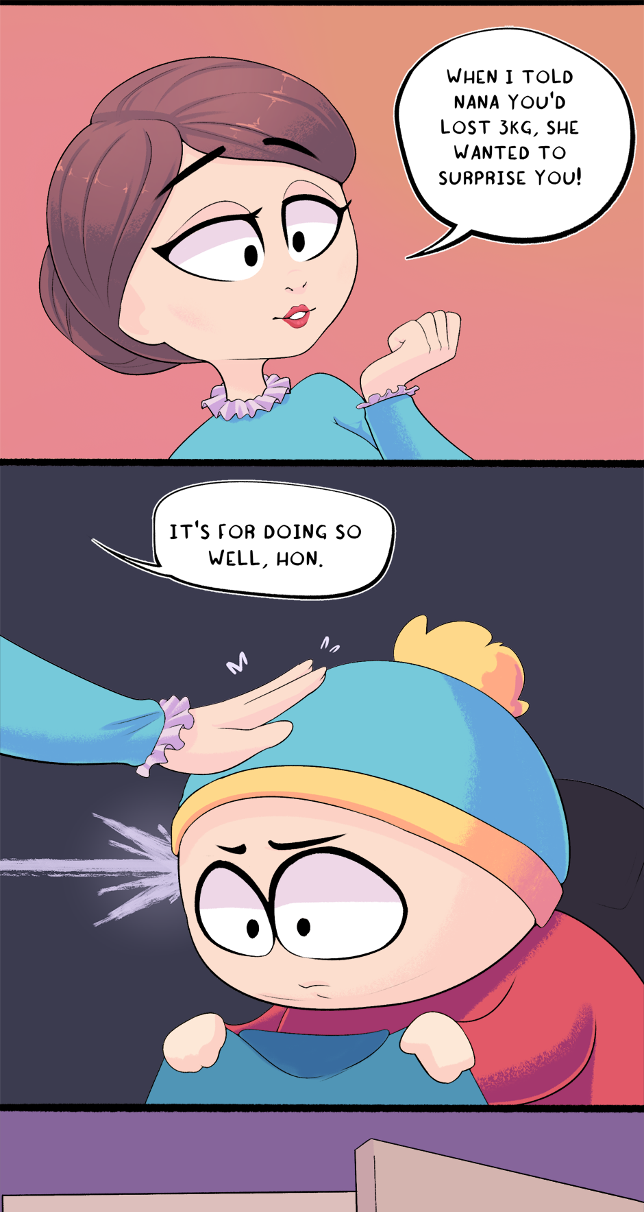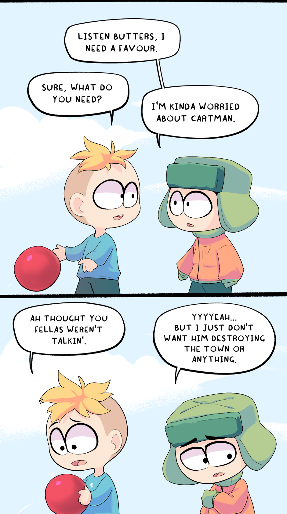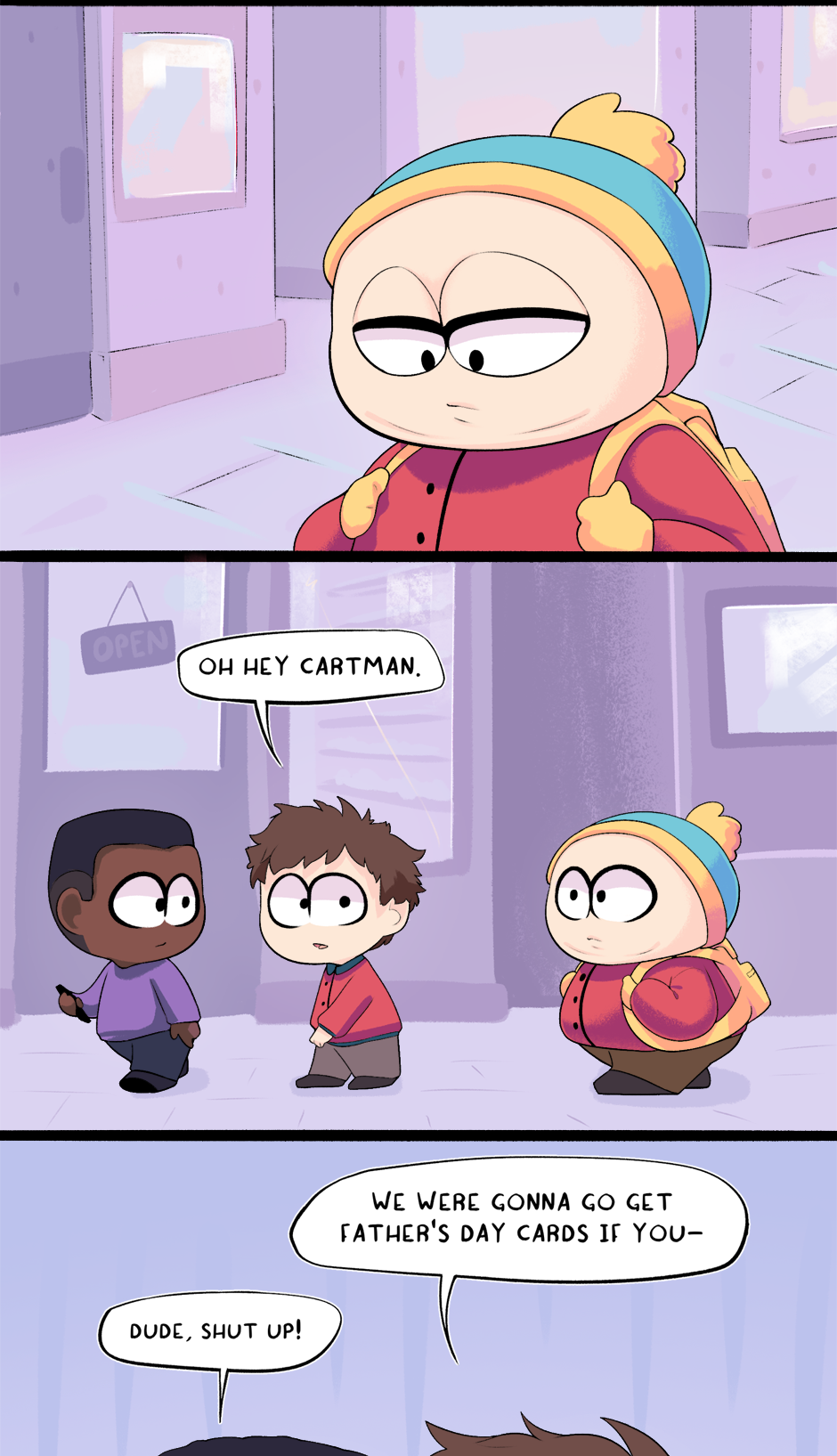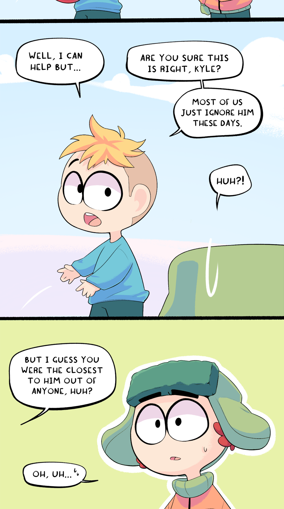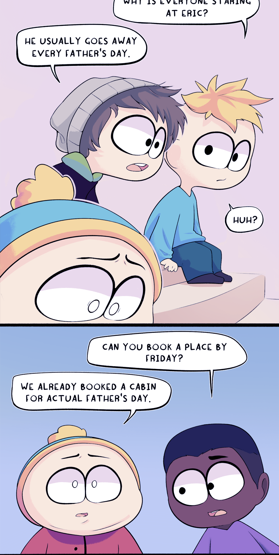 This chapter is part 2 of how Cartman got kicked out of school, with the next chapter being the third and final flashback. The next chapter is entirely planned and half-drawn already. It was originally supposed to just end this chapter but it ended up too long.