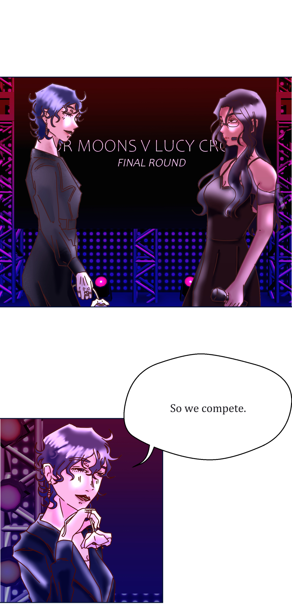 The TOP 5, Beloved by the world, something that unites peace across all humans yet behind it all lies a dark truth. Artificial human beings designed for the purpose to serve the humans. Top 2 rival members, Yor Moons and Lucy Crouse find themselves in a very interesting situation. A relationship hidden off screen in a world for a means to survive. Standing between them is Odi, who also happens to be in the same place as them.