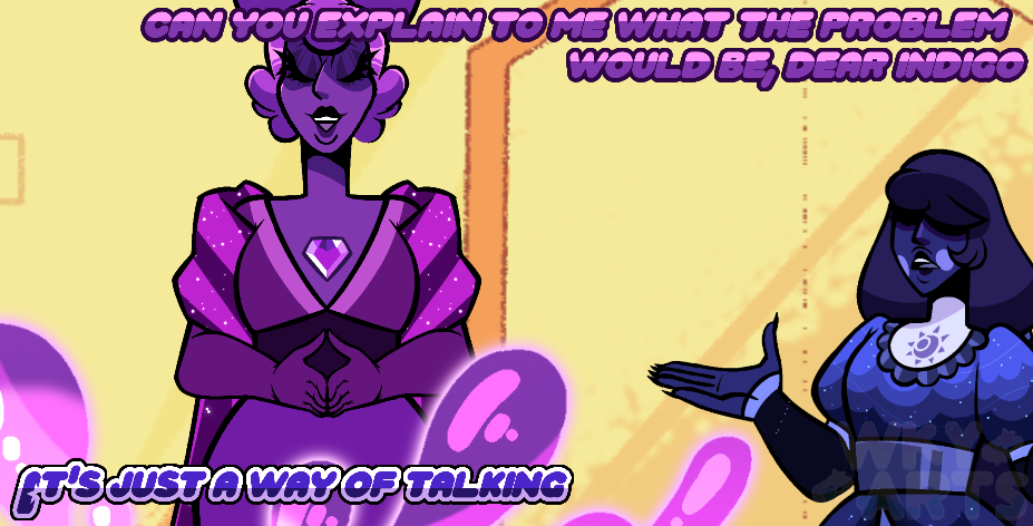 In this Steven Universe AU, Indigo Diamond, a leader haunted by mysterious traumas, grapples with the shadows of her past. Alongside her loyal Pearls, she uncovers secrets that reveal who she was and what broke her. Can Indigo find peace with her traumas, or will they consume her?