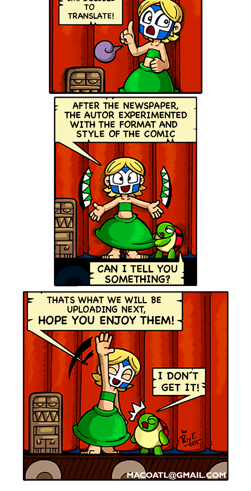 From 2005 to 2015, Macoatl was a comic strip in a weekly newspaper here in Guadalajara, México. 10 years 500 strips, this is mostly to backup the whole thing, I plan to upload 3 strips each week until the entire thing is here. If you want to read more newer Macoatl comics, I invite you to read my current comic here on Tapas MACOATL tapas.io/series/macoatl