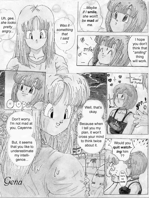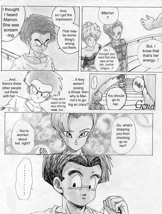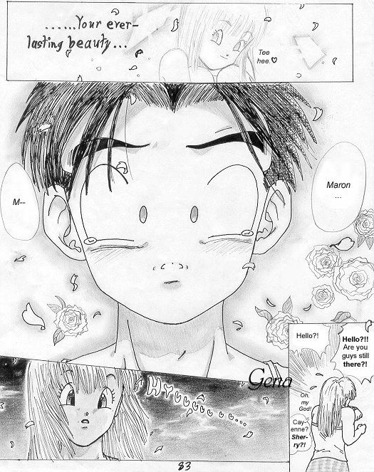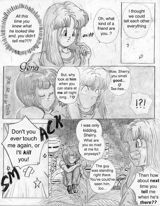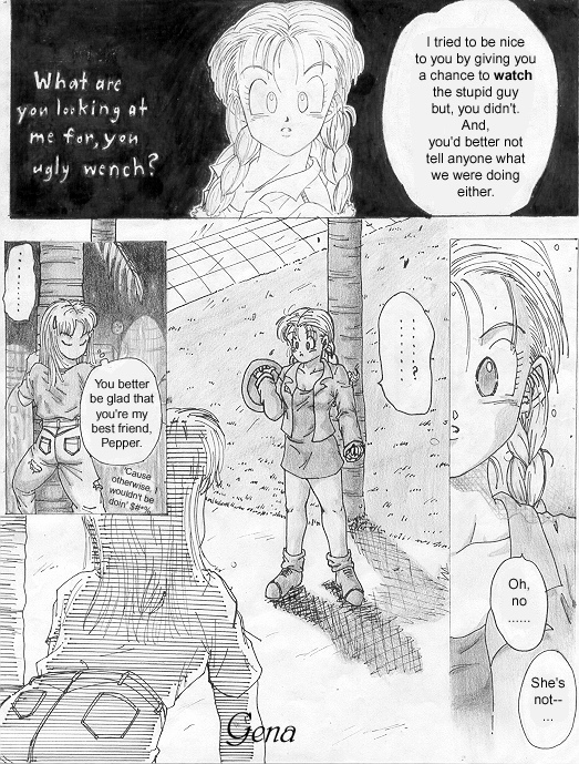 Summary from my site: "This is my ooollllddd DBZ fanmanga that I began while I was still in high school... heck, when I was a *freshman* in high school. Looking back on it now, I realize how crappy it was, but at the same time, I realize what natural flowing of panels I used to have!! (lol) I still love it. ^_^ Maybe it's just because I drew and spent so many years on it? Or, that I still love DBZ... yeah, probably why. =P I'm sorry if my craptacular art in chapter one annoys you... it bothers the heck outta me, so I can understand, haha!