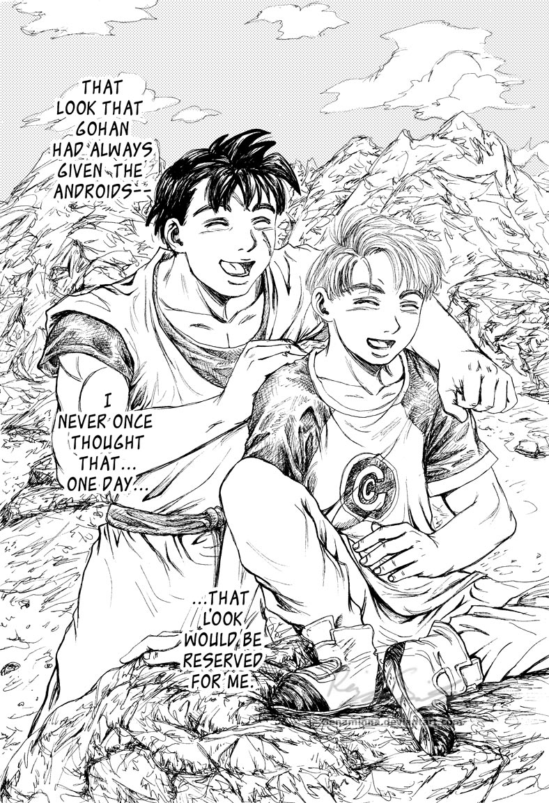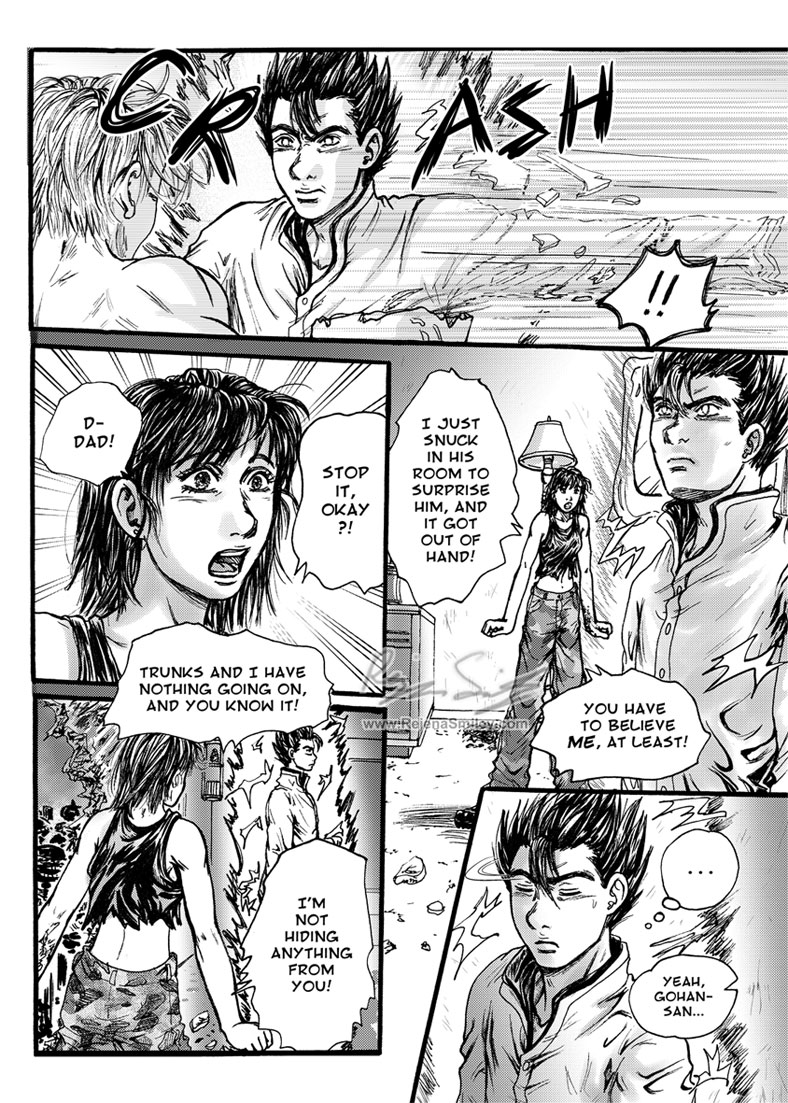 Summary from my site: "This is my ooollllddd DBZ fanmanga that I began while I was still in high school... heck, when I was a *freshman* in high school. Looking back on it now, I realize how crappy it was, but at the same time, I realize what natural flowing of panels I used to have!! (lol) I still love it. ^_^ Maybe it's just because I drew and spent so many years on it? Or, that I still love DBZ... yeah, probably why. =P I'm sorry if my craptacular art in chapter one annoys you... it bothers the heck outta me, so I can understand, haha!