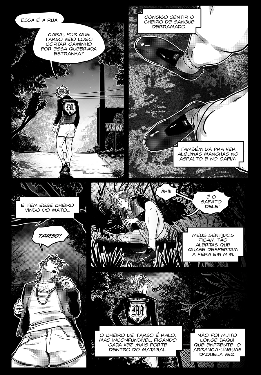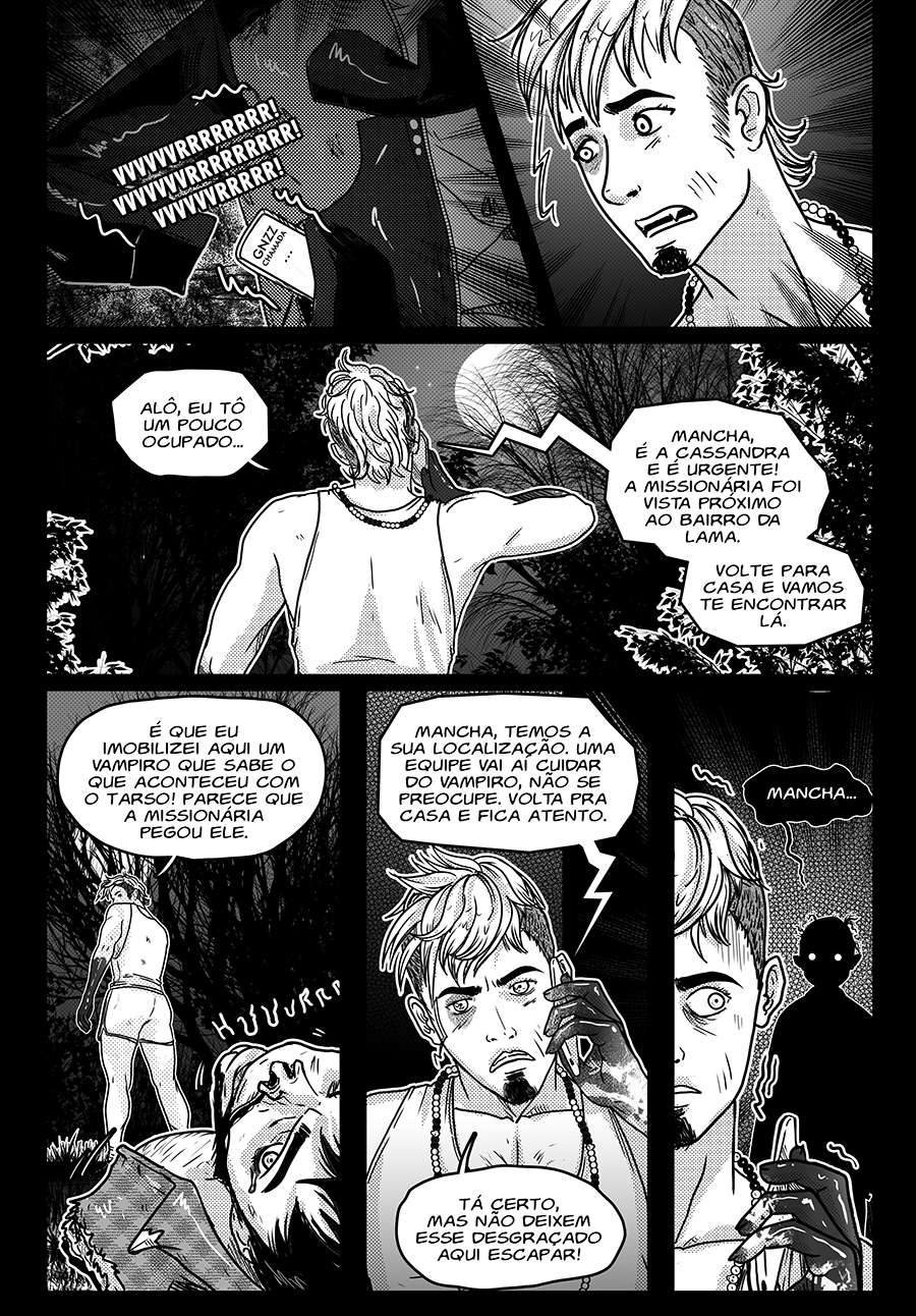 Toda noite de sexta-feira o jovem Mancha precisa percorrer as encruzilhadas do bairro onde mora, mas não devido ao que os mitos falam da sua condição de lobisomem, e sim para fazer seus corres e sustentar a casa que divide com a avó doente e um cachorro. Conhecido pela rapidez e eficiência nas entregas das mercadorias, Mancha sabe lidar muito bem com milico, tretas de gangues e a complicada administração de seus diversos contatinhos amorosos, mas mesmo em seu precário e desassistido bairro suas ações podem não passar despercebidas pelos até então indiferentes figurões do tal Mundo da Noite.