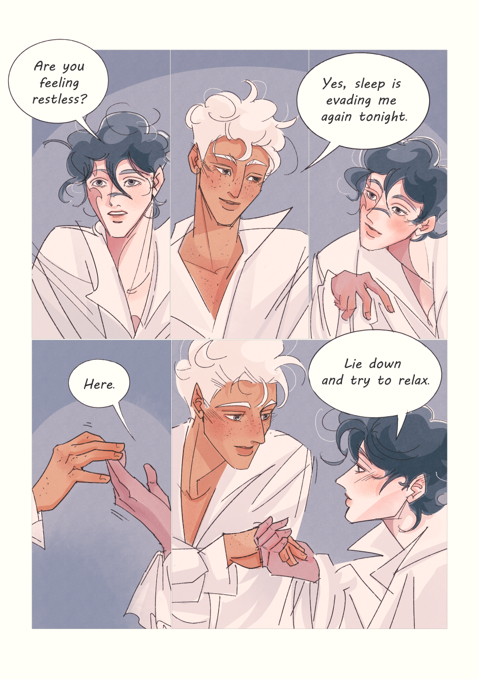 Prince René wakes up from a nightmare related to his past. What will he do when the royal mage comes to keep him company, but there are some unspoken feelings between them?