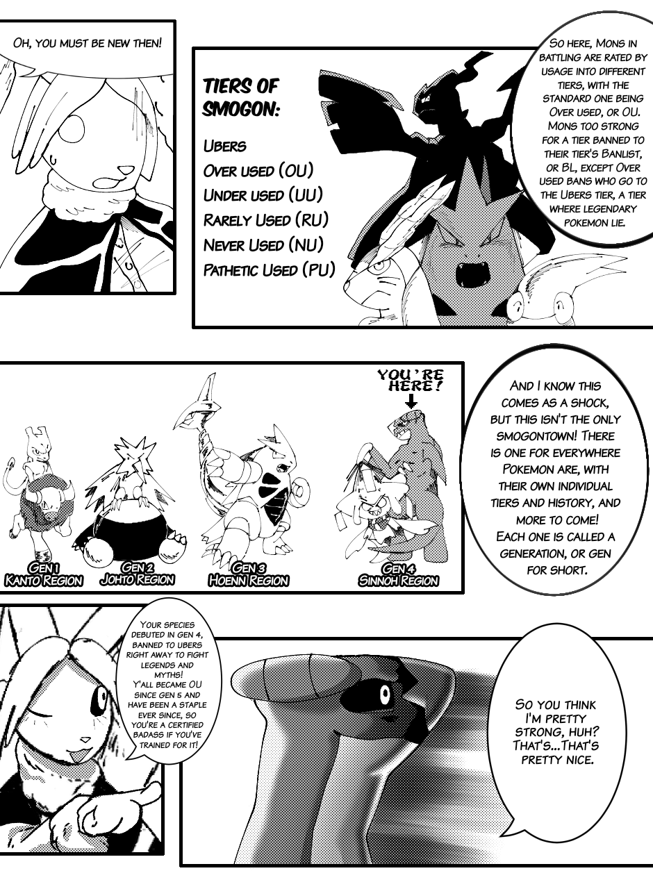 Pebble is the new guy, or Pokemon, in the abandoned, and now blooming with a pokemon-only population, Smogontown. Little does he know, many battles lie ahead, as this town is one ruled by the sport of competitive battling. He's most definitely willing to take on the world for a sandwich, as even the strongest dragons would, but will he have it in him to win? Who will he meet in his journey? Will sand become meta once again? Find out in this webcomic!