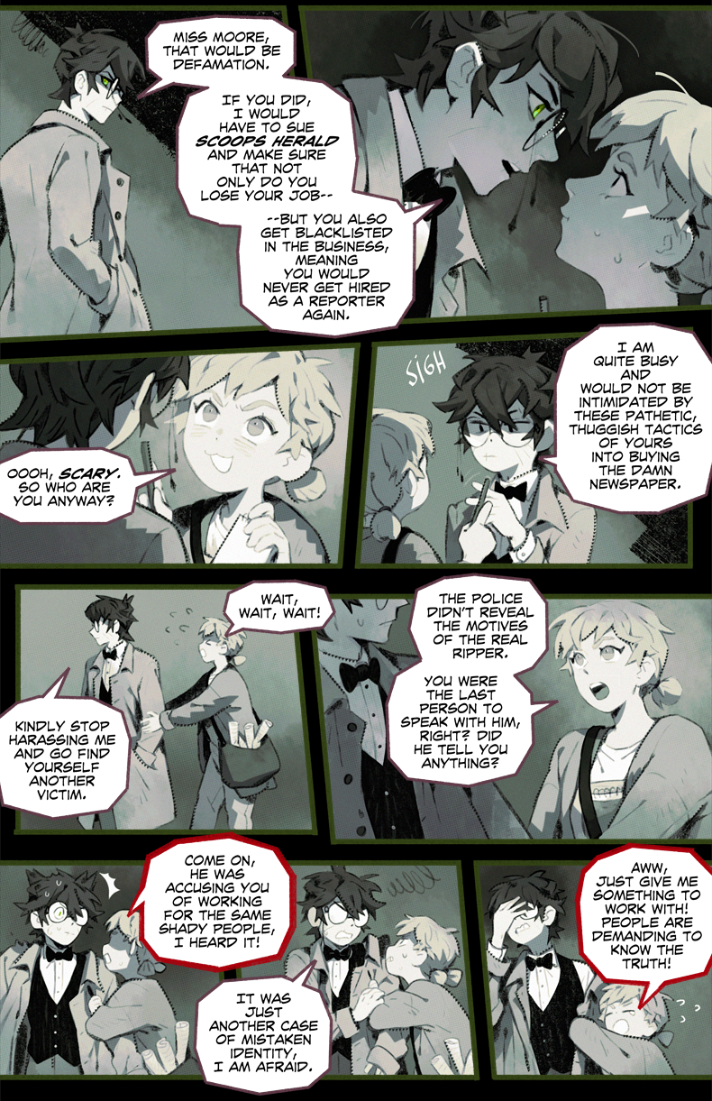 HAYDEN’S NOTES is a magic realism mystery with horror elements, set in the fictional country in the first half of the 20th century. The comic’s told in the non-chronological order revolving around Hayden Carter, immortal (by accident) gray mage, pursuer of knowledge and a witty nuisance for everyone around.