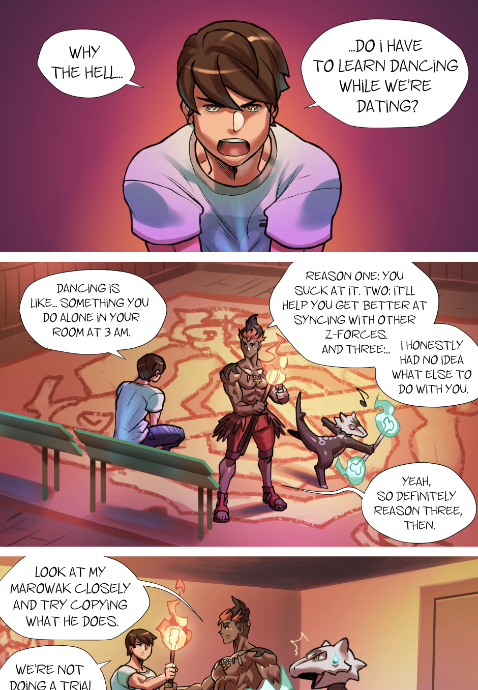 What begins as a traditional Pokémon journey quickly takes an unexpected turn, especially after Baqué takes on the Fire-type Trial and finds himself instantly smitten with its fiery Captain, Kiawe.
