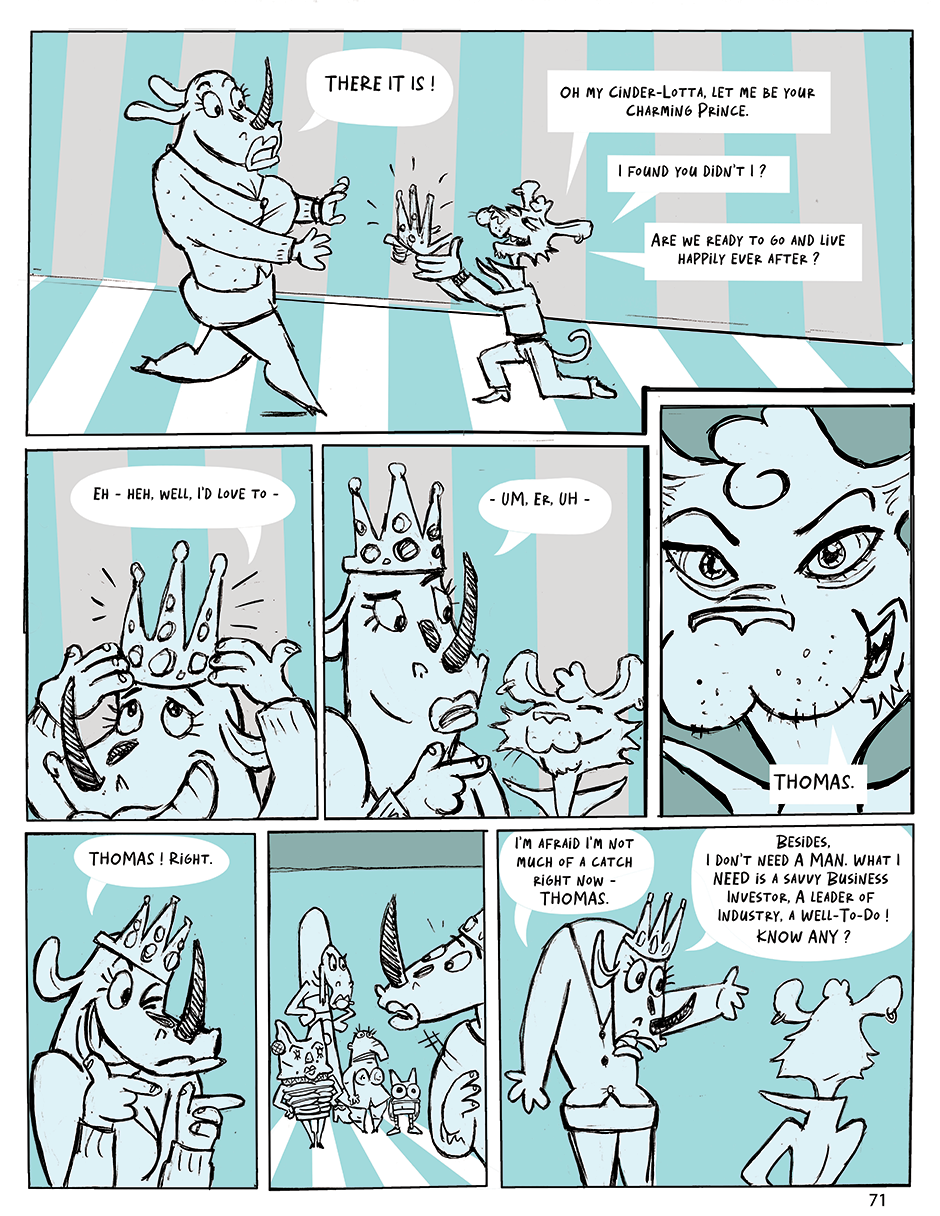 Welcome to the fiercely glamorous world of THE BEAUTIES! - Meet LOTTA, a bodacious, bling-wearing Rhinoceros and her staff of attention-craving, coiffed animal ladies working at Sauvage Hair, Lotta's tres chic beauty salon in downtown Junglewood, where the banter flies faster than hoofs can be painted. - Follow their journey of self-discovery through Lotta's exciting adventures and misadventures. Can Lotta save her salon while thwarting a jewel heist? - The BEAUTIES, a laugh-out-loud Tale full of naughty fun and heartfelt moments that will leave you eager to book your next appointment!