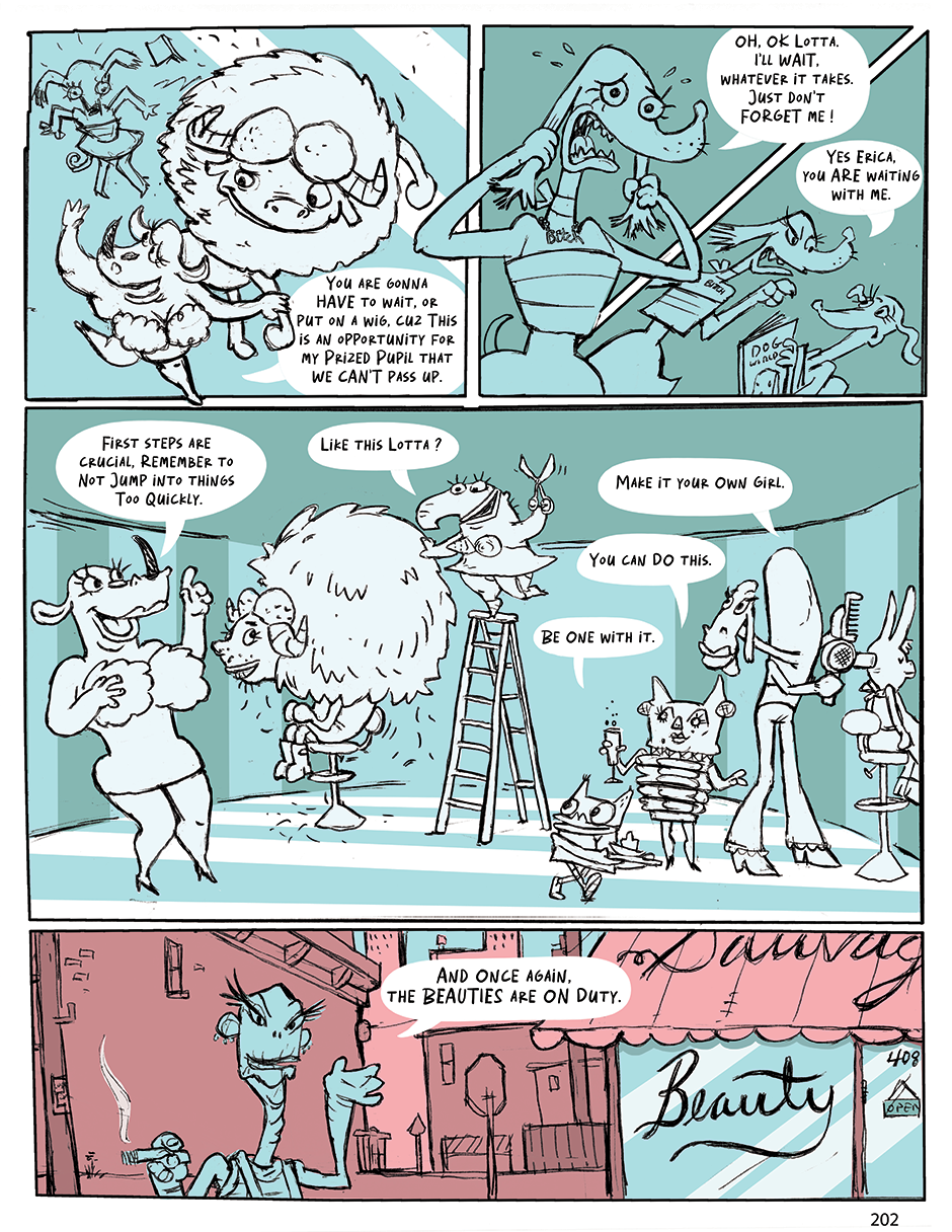Welcome to the fiercely glamorous world of THE BEAUTIES! - Meet LOTTA, a bodacious, bling-wearing Rhinoceros and her staff of attention-craving, coiffed animal ladies working at Sauvage Hair, Lotta's tres chic beauty salon in downtown Junglewood, where the banter flies faster than hoofs can be painted. - Follow their journey of self-discovery through Lotta's exciting adventures and misadventures. Can Lotta save her salon while thwarting a jewel heist? - The BEAUTIES, a laugh-out-loud Tale full of naughty fun and heartfelt moments that will leave you eager to book your next appointment!