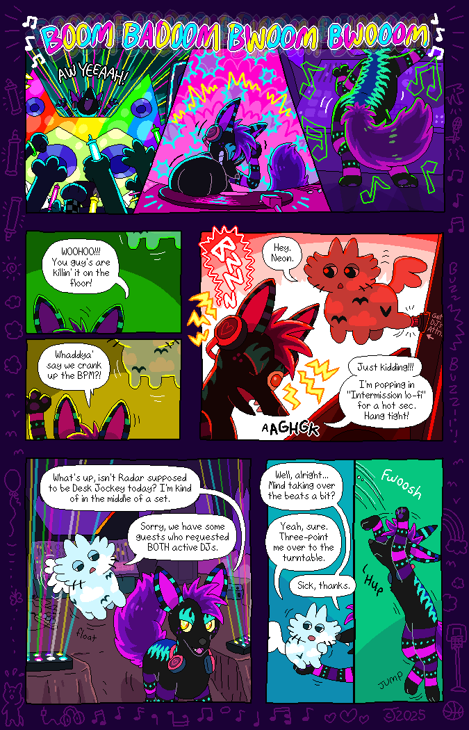 Most of the character designs were bought (adopted) from children on DeviantArt, resulting in a colorful cast of cats and dogs! The comic was made to be a love-letter to the creative minds of these kids. Credits to the original designers will be in the page description as they appear. The comic is all-ages.