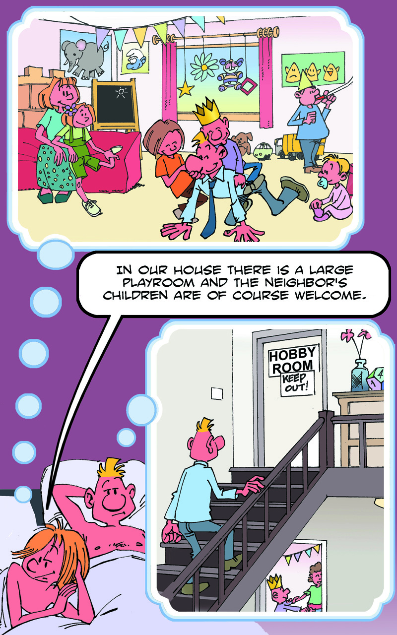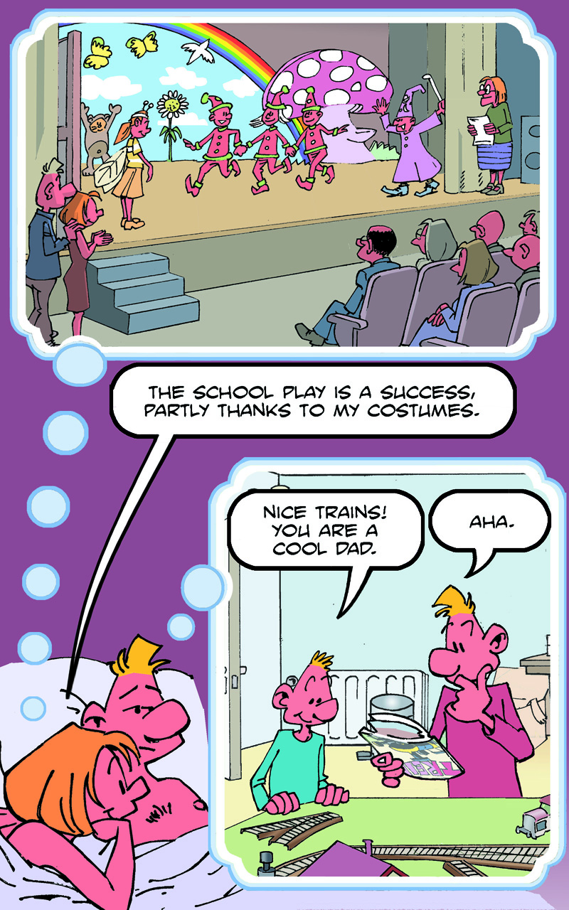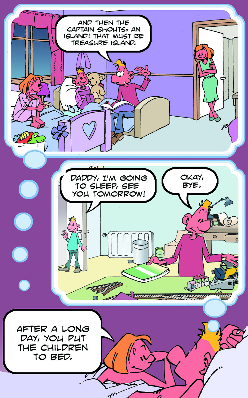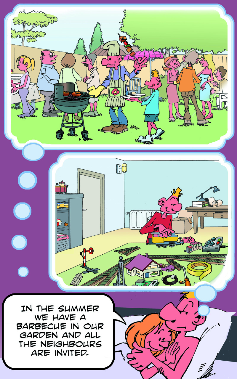 On the weekend, he goes to the pub to meet his friends, Fred and Stan.