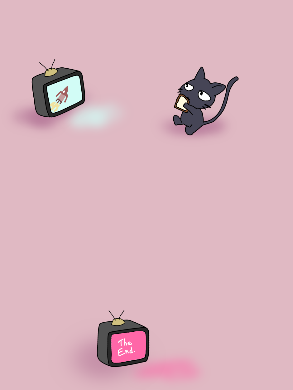 kibo is watching tv, about rockets and spaceships, the movie ends, kibo falls asleep.