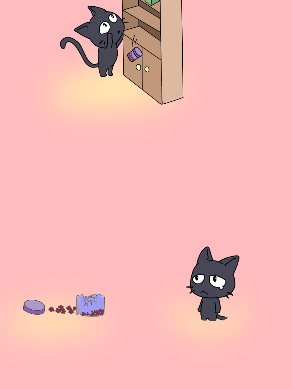 kibo is taking out, chocolates from the jar, the jar is kept too high, the jar falls and breaks, kibo become sad.