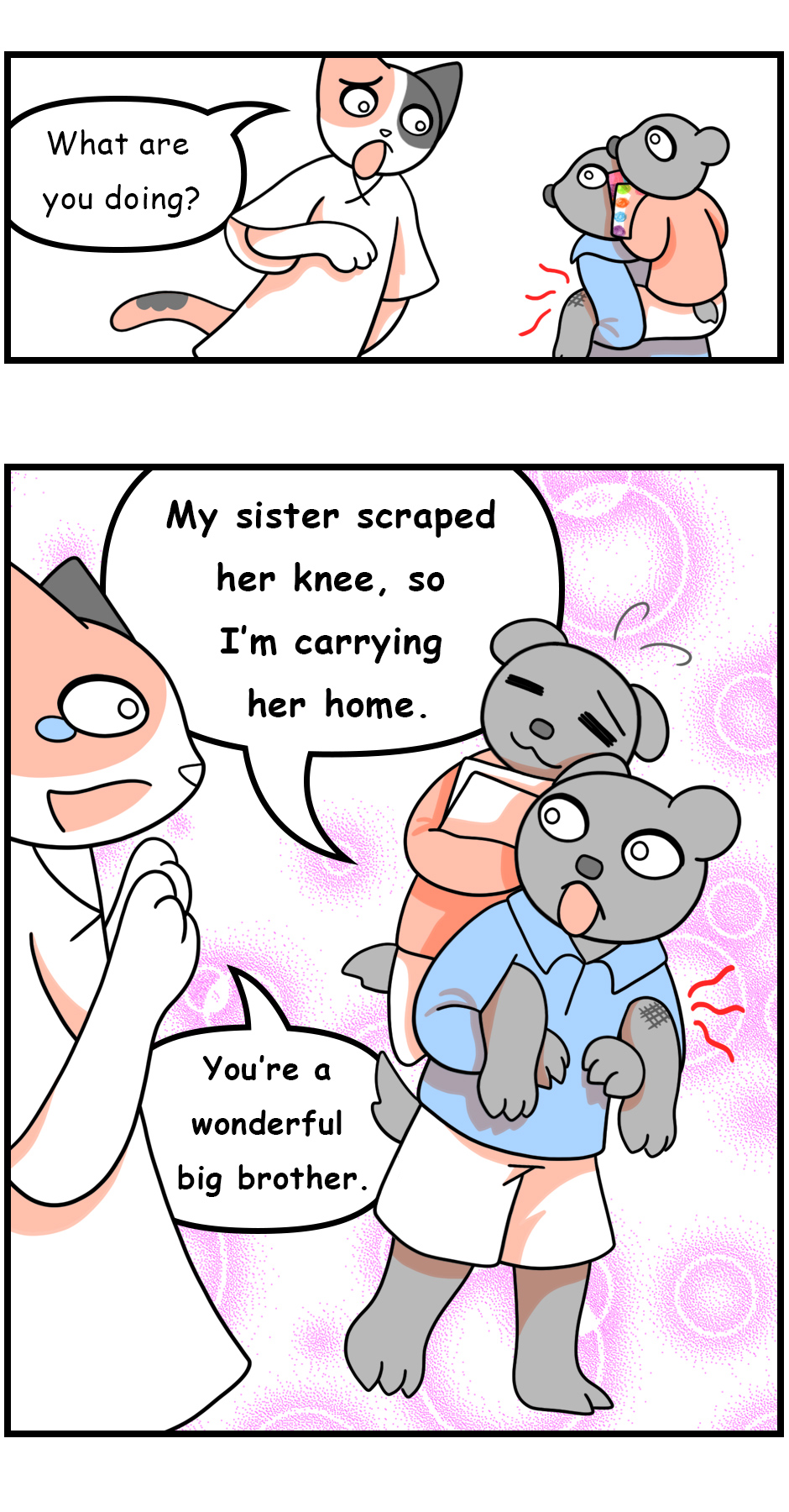 That's so sweet and cute these siblings get along so well and work together! Reminds me of how me and my brother made a couple of short comics and silly stories together when we were young. I miss him dearly.