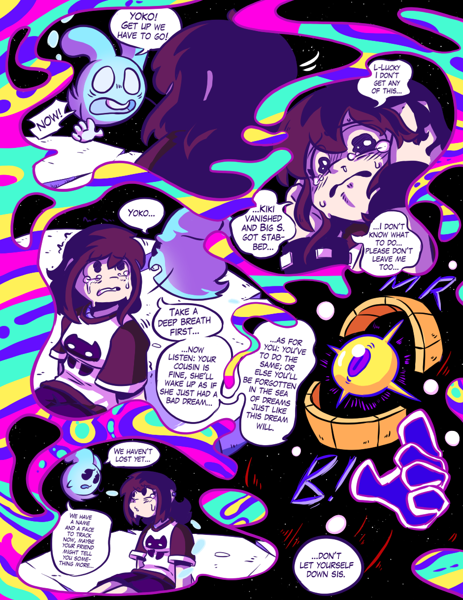 Yoko, once inside the oniric layer, she meets her friend Lucky and together they will have to chase the manifestations of Yoko's fears. Someone is controlling them, but who will it be? For Yoko and Lucky, will await an incredible pursuit through the dreams and bonds of the people of Handsville.