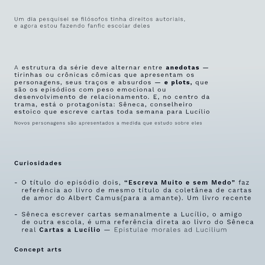 Lucius Annaeus Sêneca, um estoico diplomático e paciente, começa o ano letivo sendo abençoado com a presença de um caos com ostracismo: Albert Camus, o persona non grata da escola. Sêneca, você só queria paz, não é?