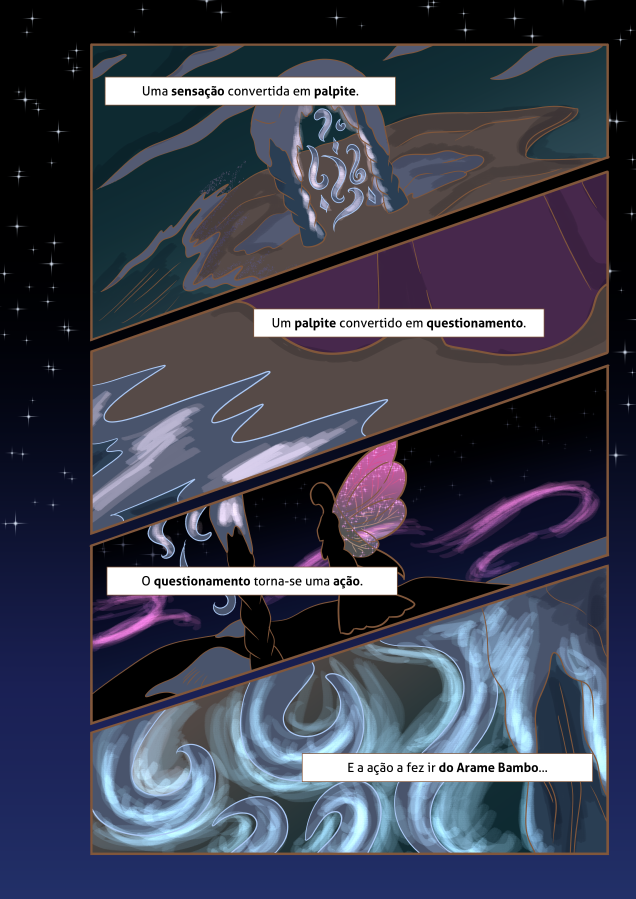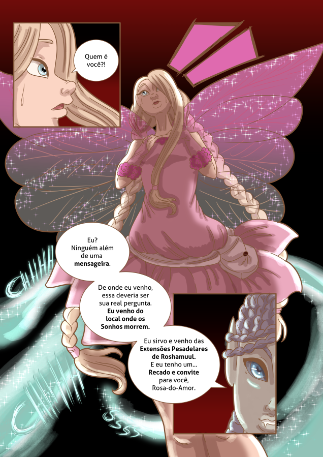 Desolada, decidiu abandonar seu lar e foi para terras humanas, em busca de ajuda, para que, de alguma forma, pudesse ter as asas com as quais sempre sonhou…