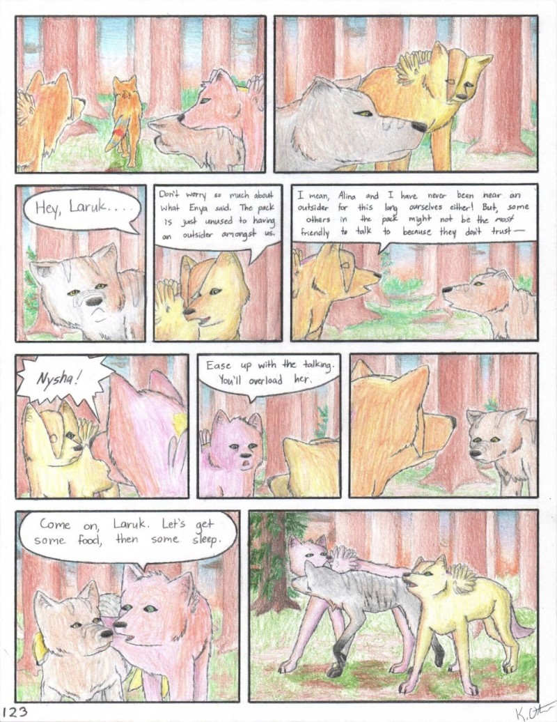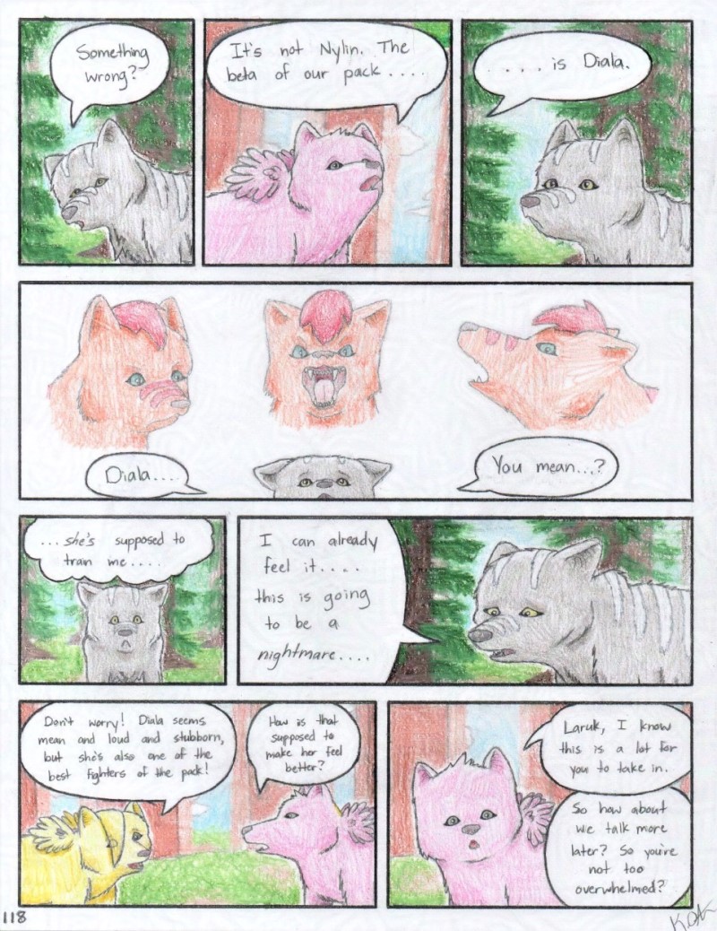 After an important decision is made, an uncertain Laruk still has questions. Luckily two sisters help teach Laruk a little about their pack. But while they are friendly and open-minded towards her, and give her a little hope, it seems others are not yet ready to open up to the outsider.
