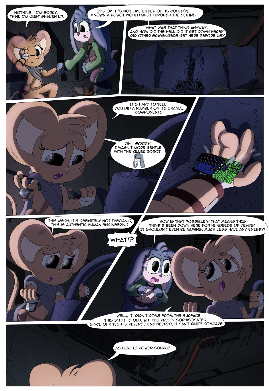 This webcomic follows a scrappy little mouse mechanic named Sparks. With a particular talent for working with old tech and fixing heavy machinery, Sparks works as the technical expert with a crew of scavengers. One day, she and her crew get their hands on a set of coordinates, believing it will lead them to an abundance of derelict technology. Unfortunately, the crew gets more than they bargained for as they find themselves trapped in a nightmarish megastructure.