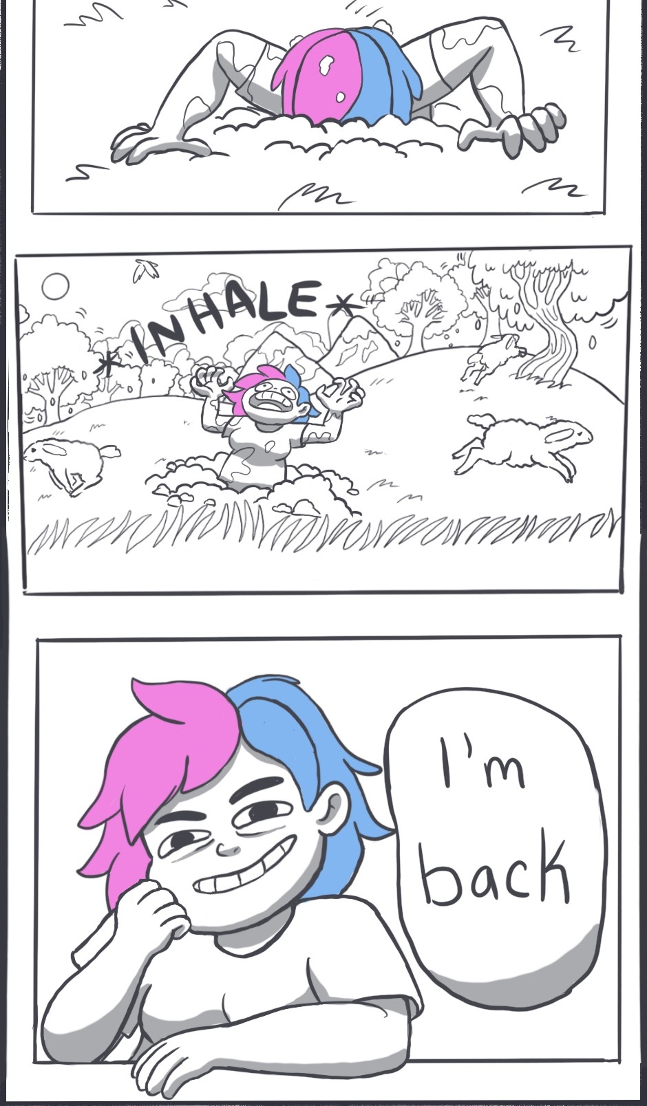 I have returned to make silly comics!! I’ll probably leave the old ones up because they’re nostalgic and honestly pretty funny. Younger me was hilarious. Look forward to some new ones coming soon though!