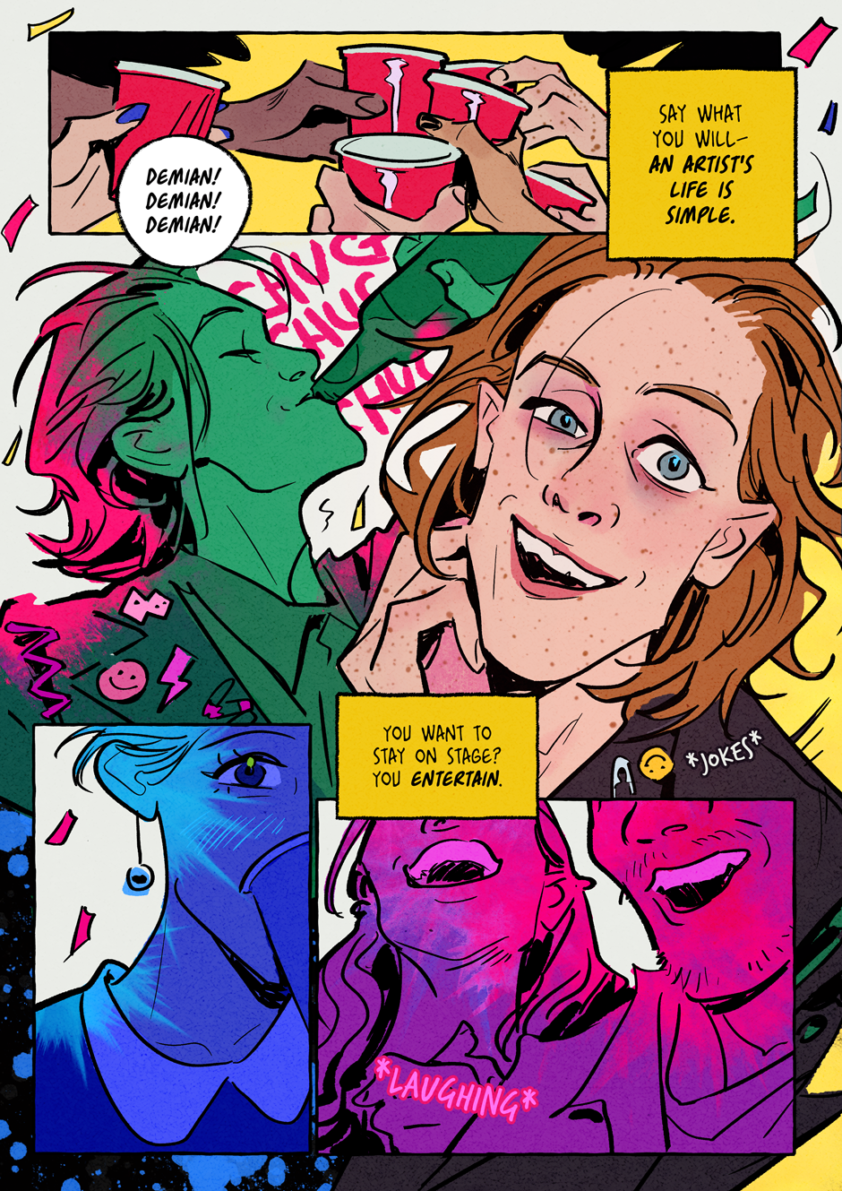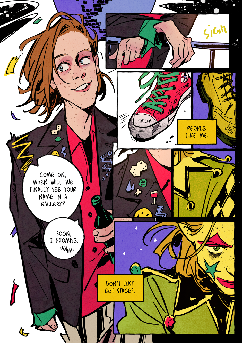 An Ambitious Young Artist, playing the jester to win over influential friends who can make him somebody, loses the only thing he truly possesses—his spark. Searching for his lost inspiration and sense of self, he unexpectedly finds both in A Mysterious Observer who seems to see through all his masks.