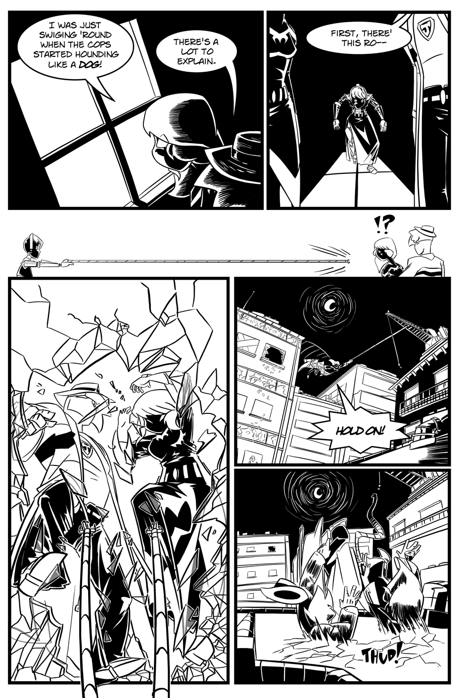 #Superhero #Action #Scifi #robots #1930s #noir #black_and_white #Fight #windows