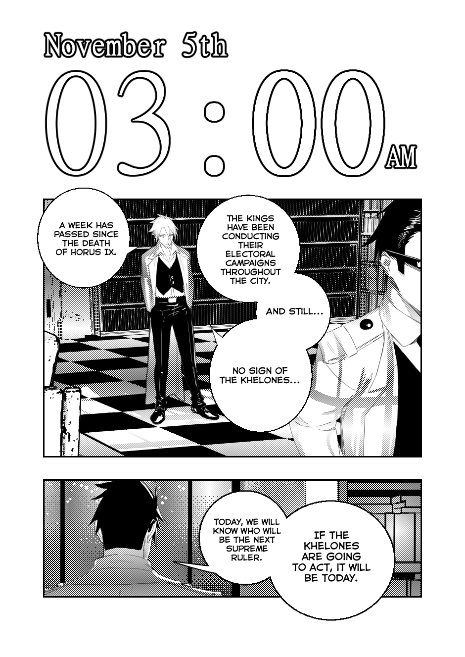 Kings with elemental powers fight against mythical creatures, monsters born of fear, to protect humanity—but only on the condition that it obeys them. The Fire Hearts, the alliance of Alexandria’s most fearsome kings, faced the Sackman, a mythical creature that feeds on the fear of children. Since then, Kio, Akai, Benckey, Haylen, Bel Bel, and Mako have overcome numerous challenges, met other kings, and forged friendships with some while becoming enemies of others. Now, they enter a new phase: Kio plans to reclaim his city from the current supreme ruler, Horus IX. Now begins the true story that must be told.