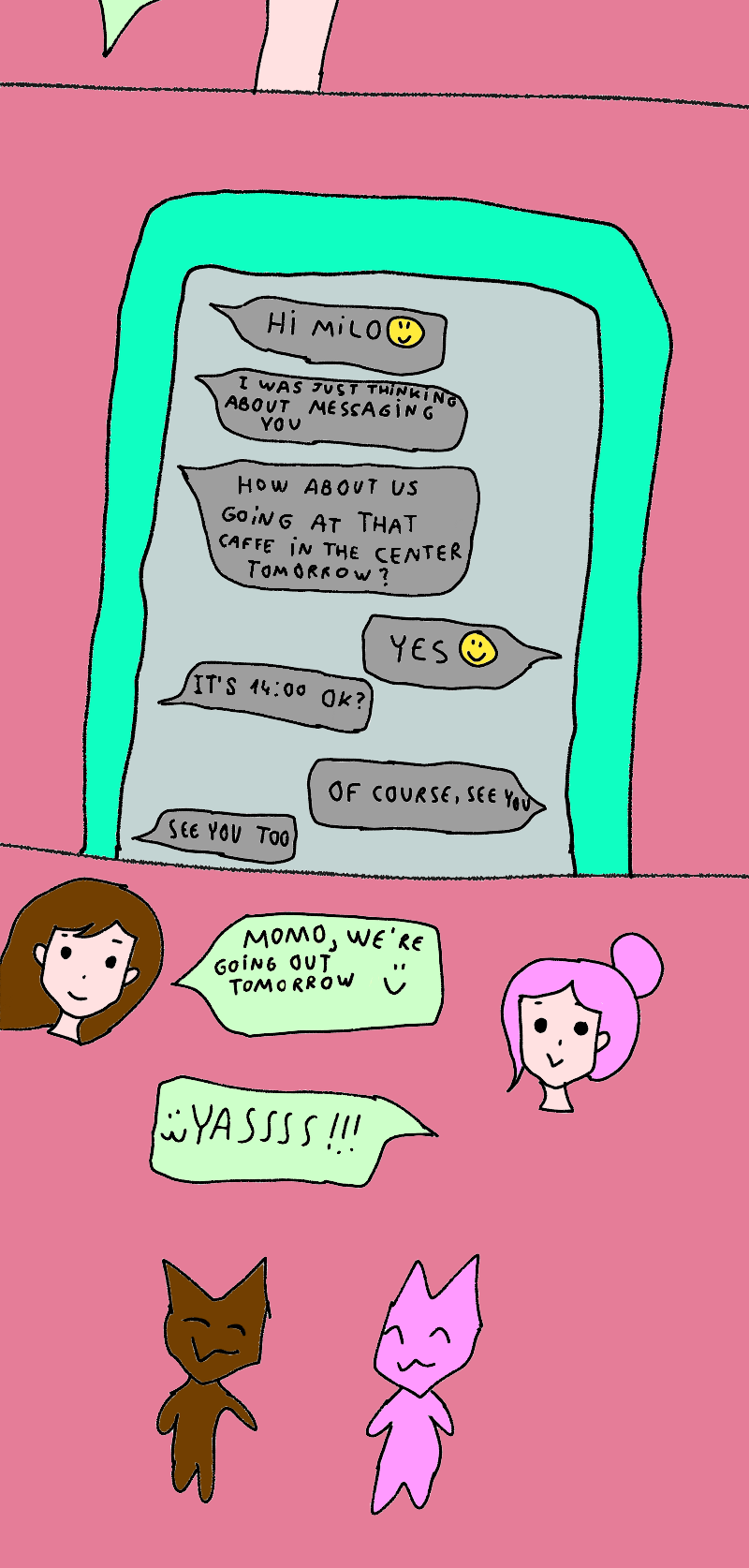 Milo is caught up in his life and little routines , getting out with his friend Momo and going to his part time job .Sometimes he seems to be lost in his own thougts but soon something will change .He meets a misterious boy and things start to get different for Milo.