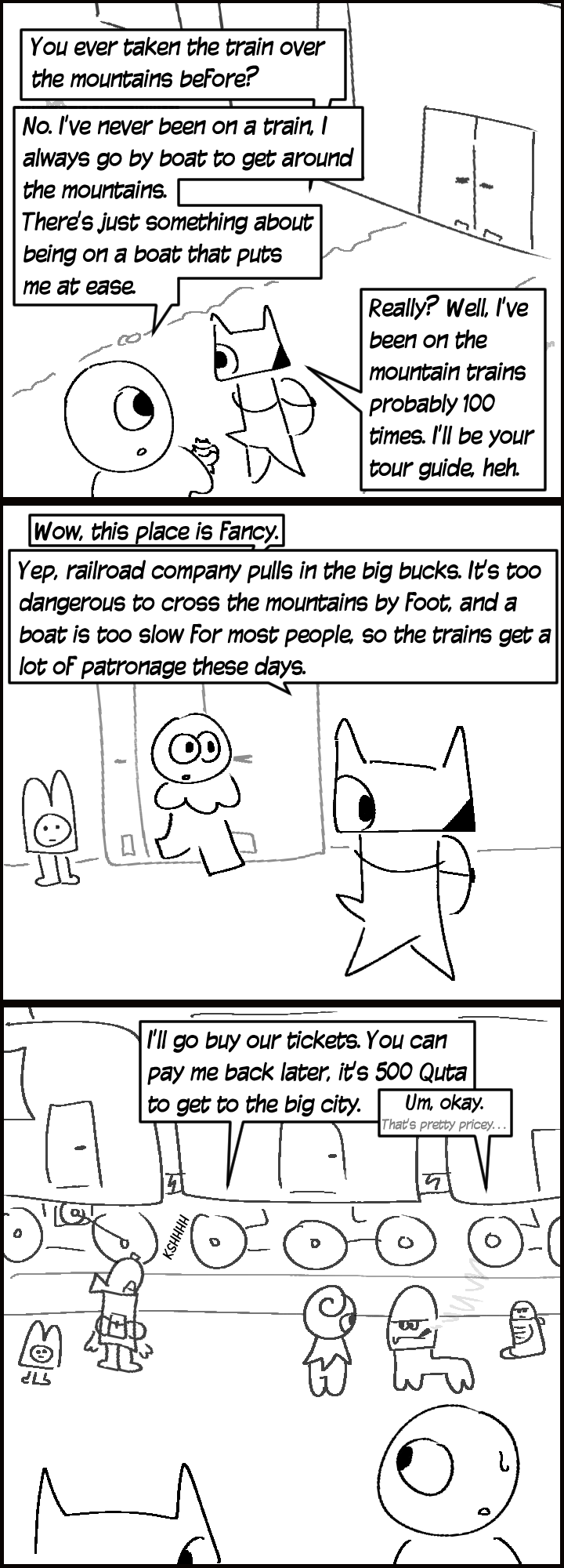 Within the last few decades, there have been groundbreaking developments in transportation, with the advent of mountain-crossing railways. The continent has long been divided by the mountains, as it is far too dangerous to cross on foot due to pockets of magic peppered across them, both inside the rock and between the mountains themselves. Instead, tracks were built up and over the peaks, allowing people and goods to be moved without boats.