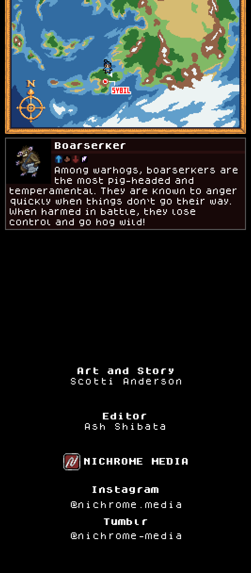 Father’s Sword is a pixel-art comic styled after classic JRPGs. Kord and his friends must face off against strange monsters, explore dungeons, and go on a journey of self discovery.