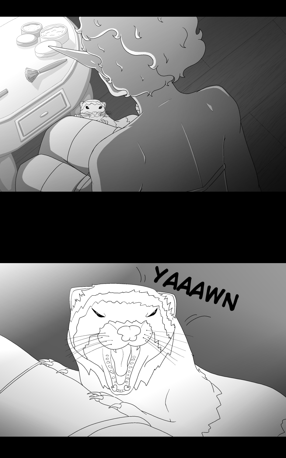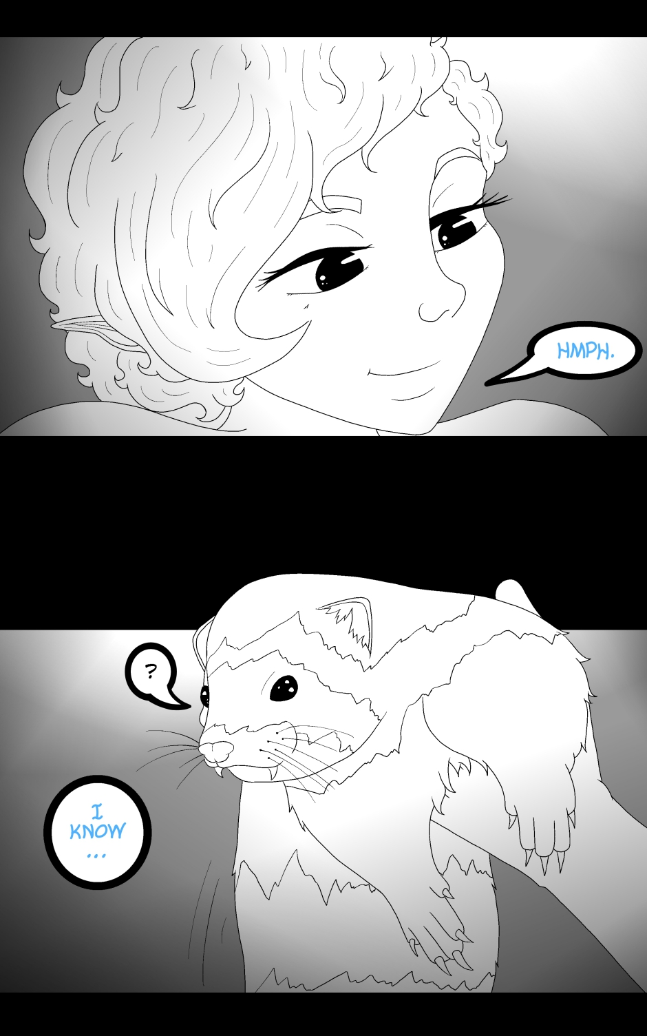 Small note- the wiggly blue text means he's speaking a different language.