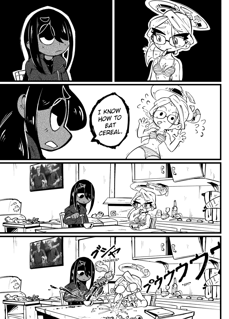 millennia ago, the world ended. in the midst of a corporatised hellscape that was rebuilt, we follow Yume, a vice-riddled angel who collects trauma like trading cards; Charlotte, a highly-adept but clinically depressed ninja with no verbal filter; and Halphas, a socially maladroit demon with delusions of grandeur and a tentative grip on reality, as they all just try to have a good time. they're not succeeding, but they're trying.