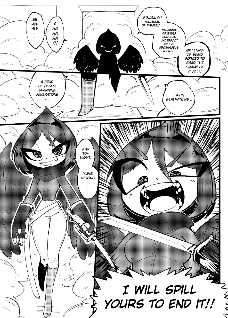 millennia ago, the world ended. in the midst of a corporatised hellscape that was rebuilt, we follow Yume, a vice-riddled angel who collects trauma like trading cards; Charlotte, a highly-adept but clinically depressed ninja with no verbal filter; and Halphas, a socially maladroit demon with delusions of grandeur and a tentative grip on reality, as they all just try to have a good time. they're not succeeding, but they're trying.