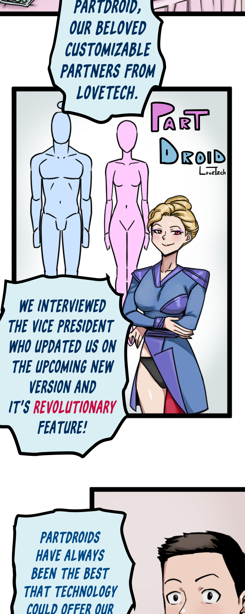 In the future, humans will be able to create their perfect artificial partner, the PartDroid, a partner modifiable to one's taste who will always love his human companion. Mike has been living happily with his PartDroid Mia for a long time; there is nothing missing in his life, yet sometimes a sense of lack catches him, and he cannot understand why. But one day at work he is introduced to his new colleague, Vetra, who like a storm disrupts Mike's quiet life.