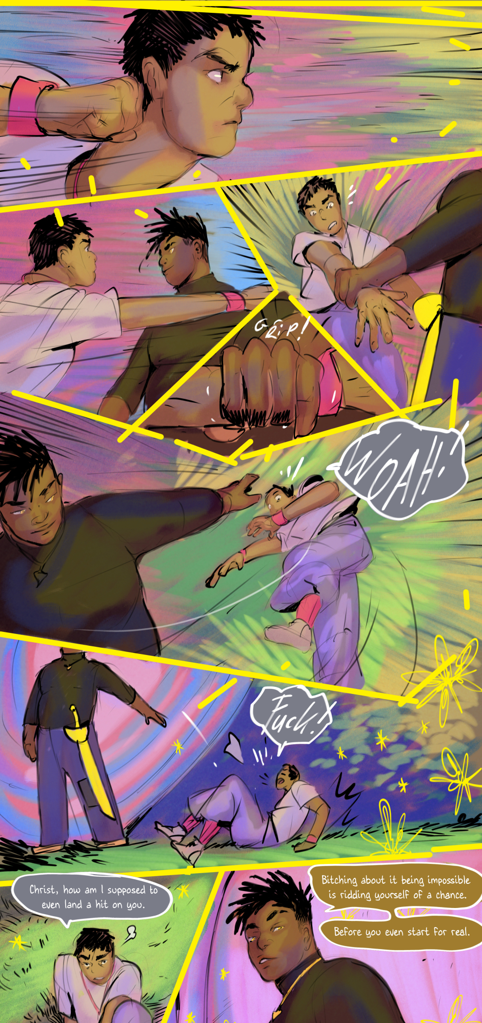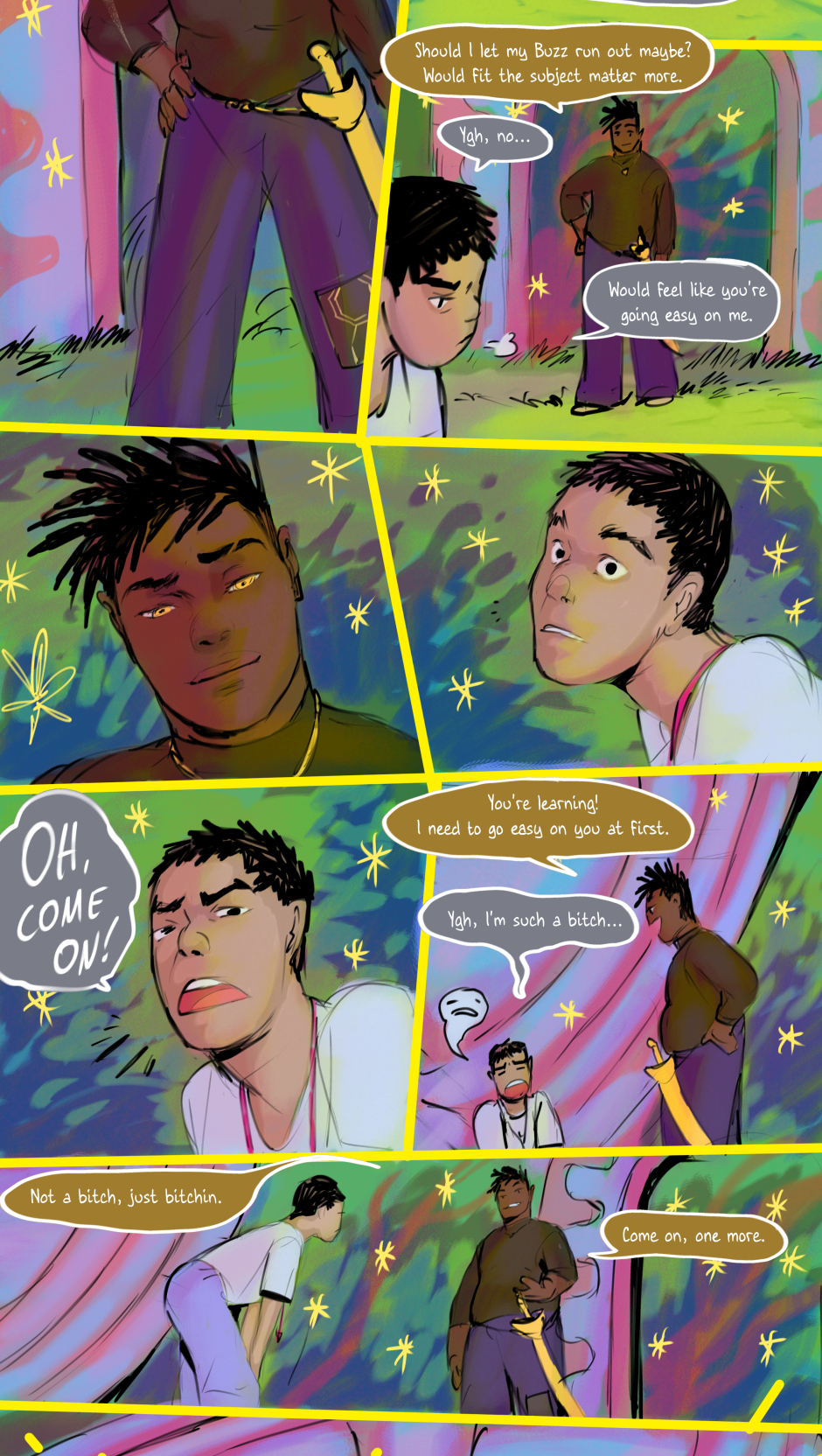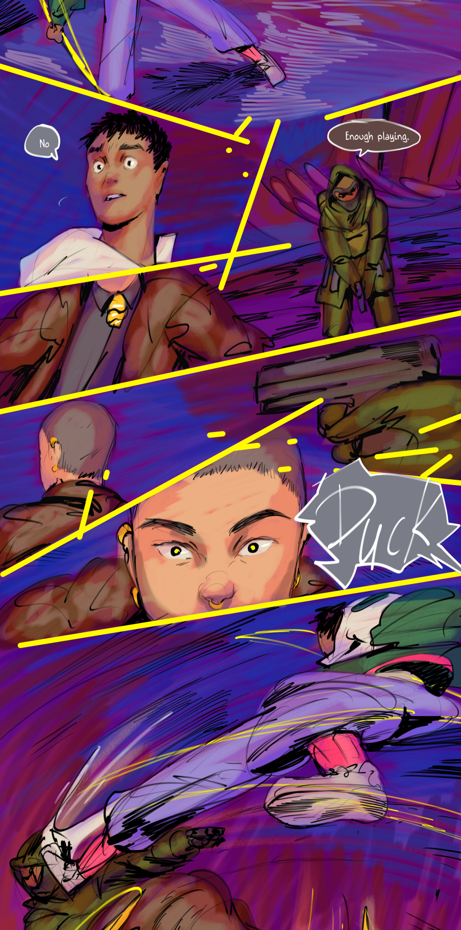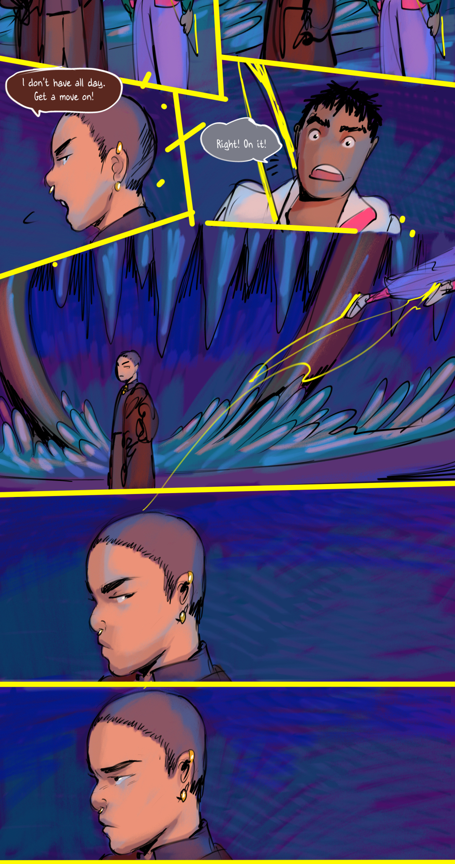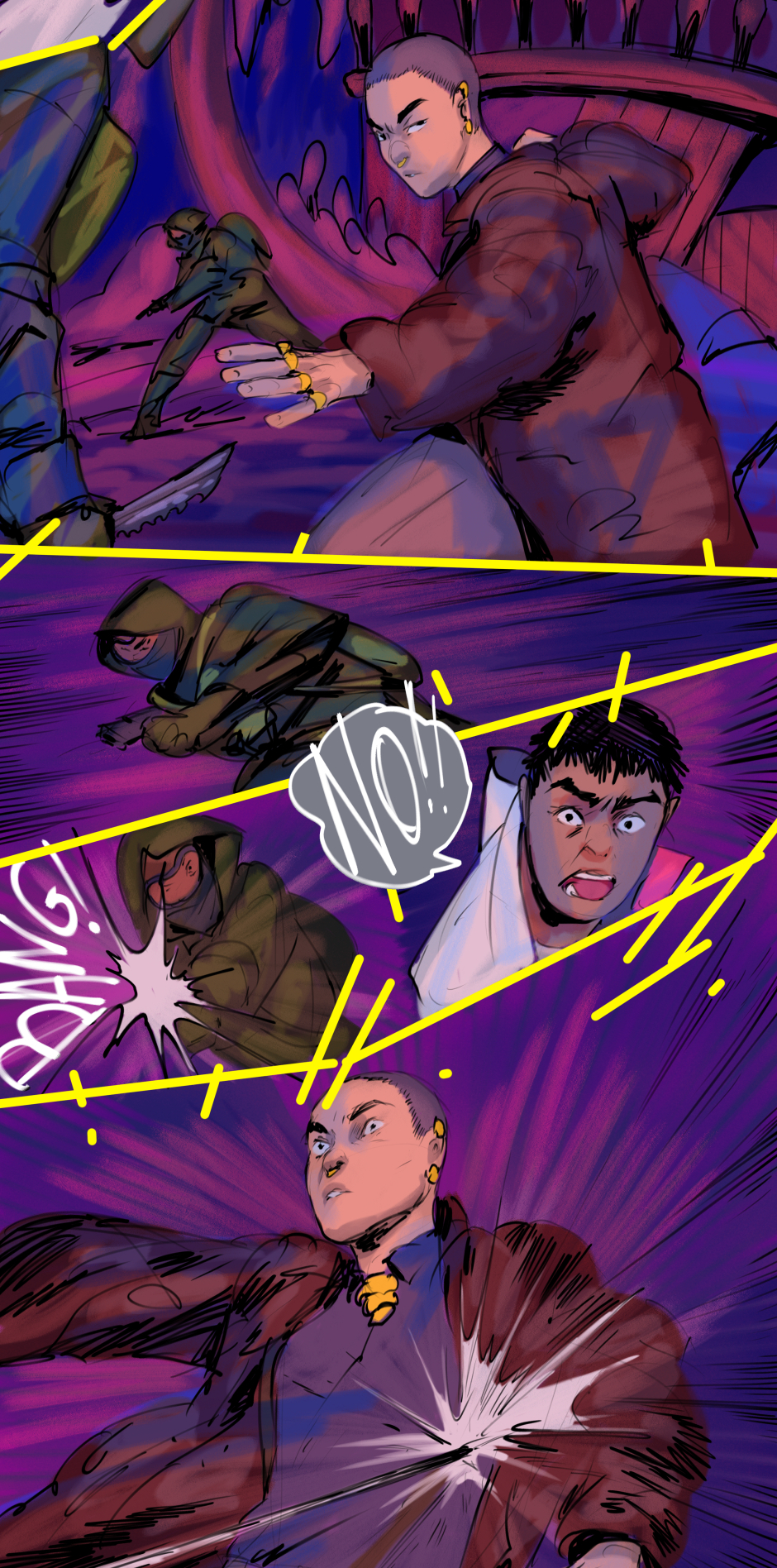 His friends become more agitated.