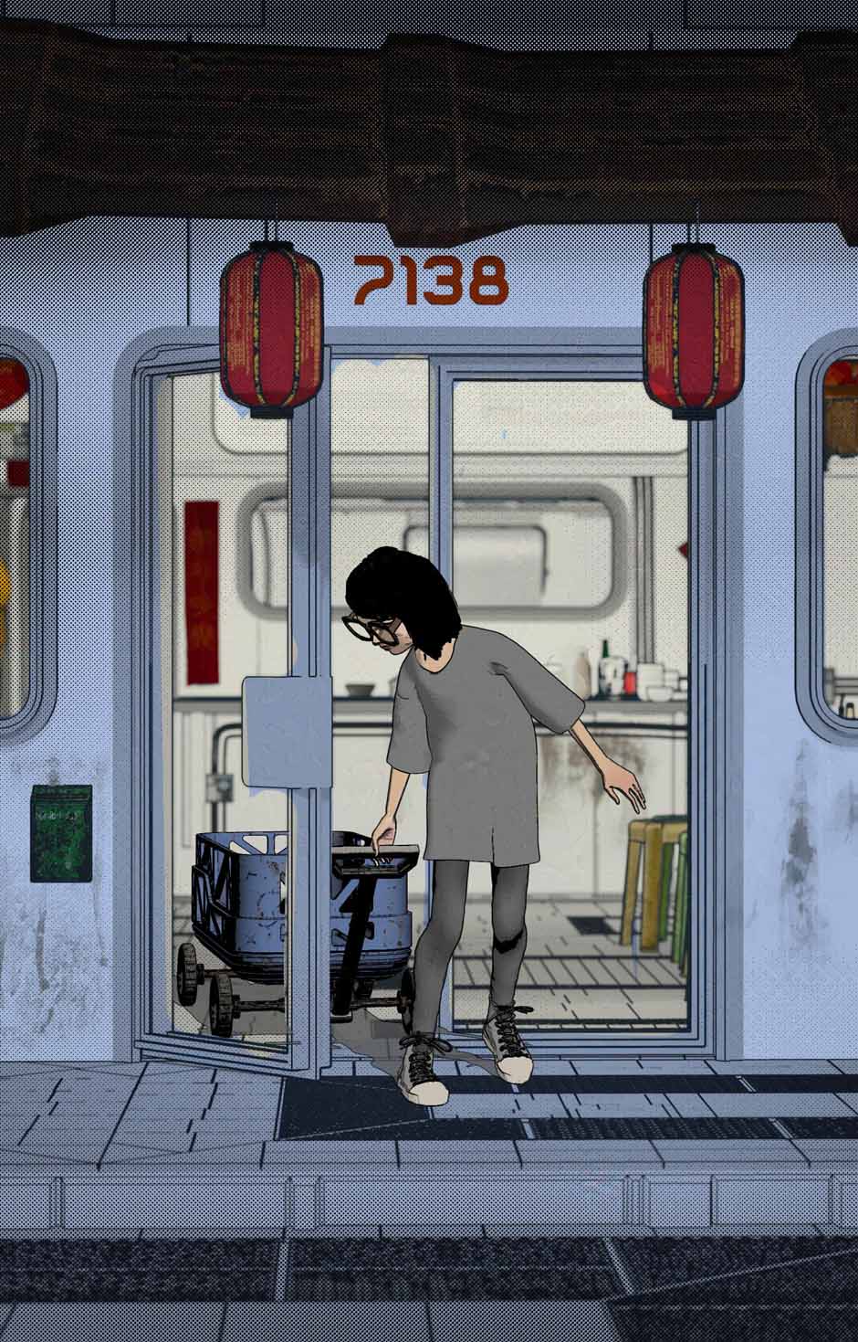 On a janky space station orbiting Mars, 15-year-old Agnes works at her immigrant family’s barely-surviving Chinese restaurant, “Ancient China.” The air is toxic, the beetles are edible, and the wok is powered by a hacked fusion pipe. It’s not much, but it’s home.