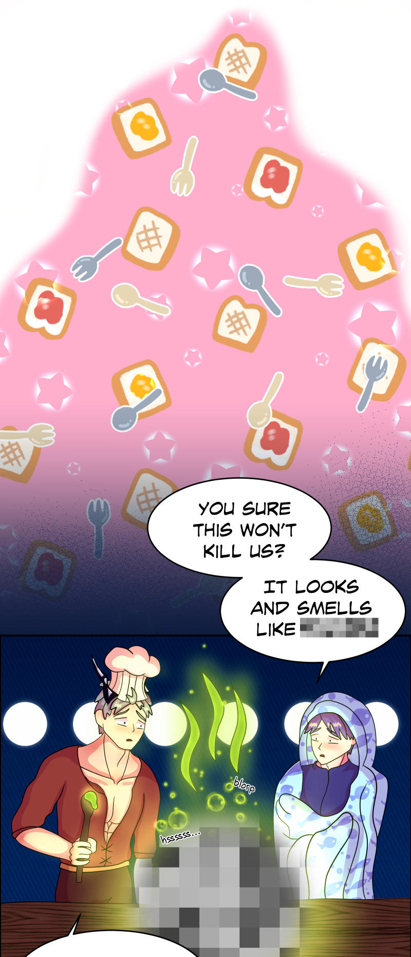 The story starts with Rafayel looking for help with his curse, and ending up by the doorstep of a mysterious couple - Sylus and Lori, and (eventually will) leads to a polygamous relationship between the three.