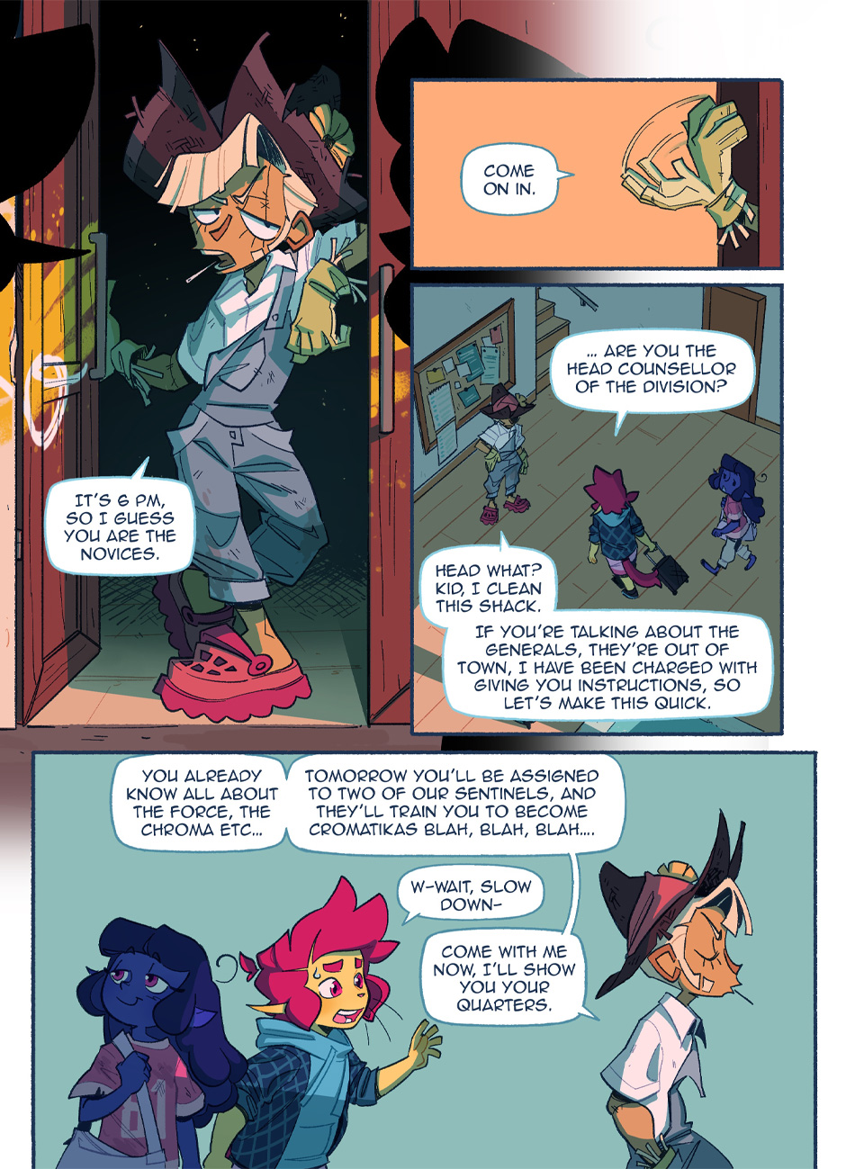 In a world where pride flags are worn as capes to fight for justice, Theo and Vee are two young novices ready to start their training to become professional sentinels. But every rookie needs a mentor, and who better to show them the ropes than the most catastrophically dysfunctional sentinels in the entire city? BE GAY, FIGHT CRIME!!!