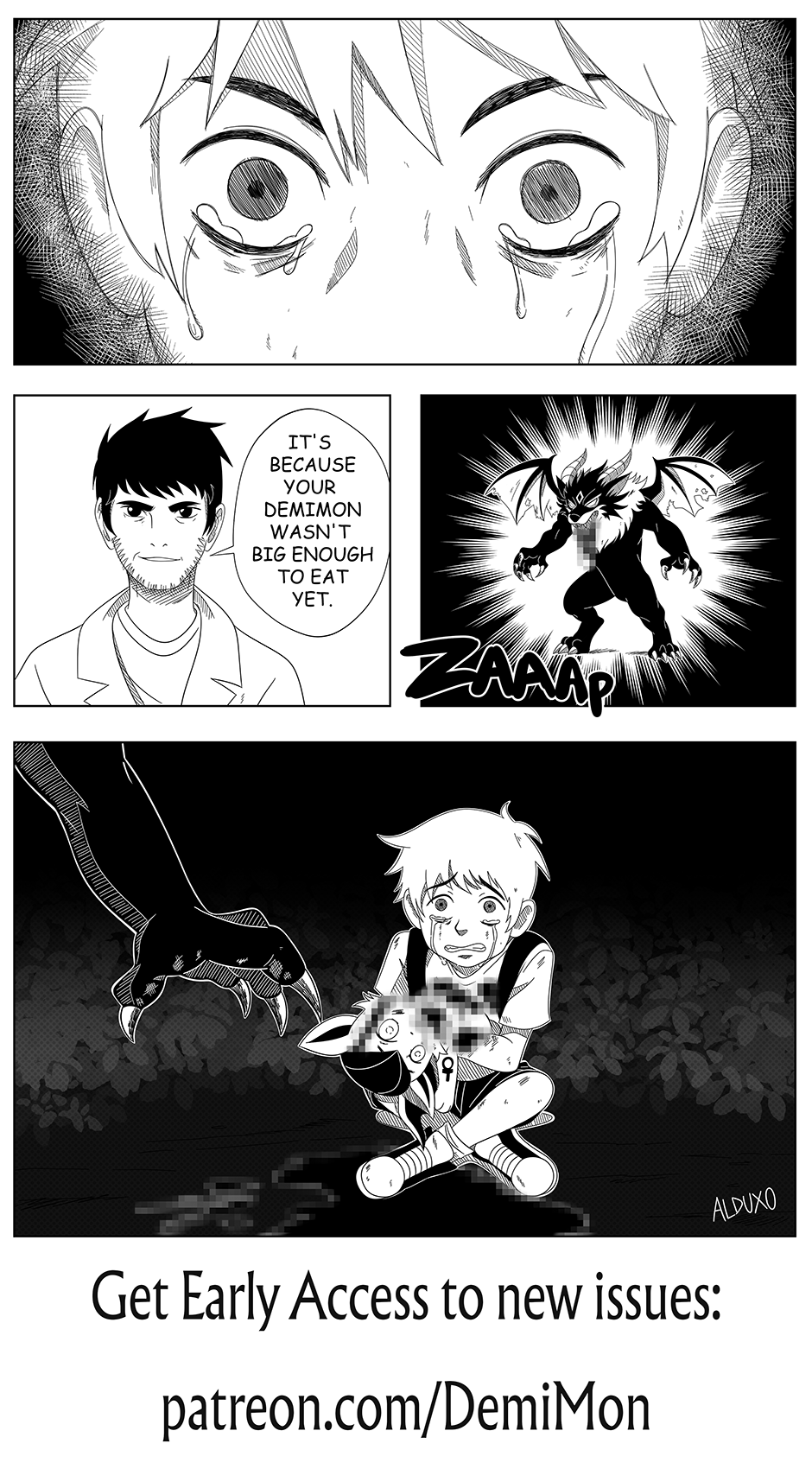 Welcome to DemiMon — the comic our lawyer says is legally a parody. Cute demons, deadly consequences. Think Saturday morning cartoons... if they ended in gore. New episodes weekly. The worst parts? Off-platform, of course.
