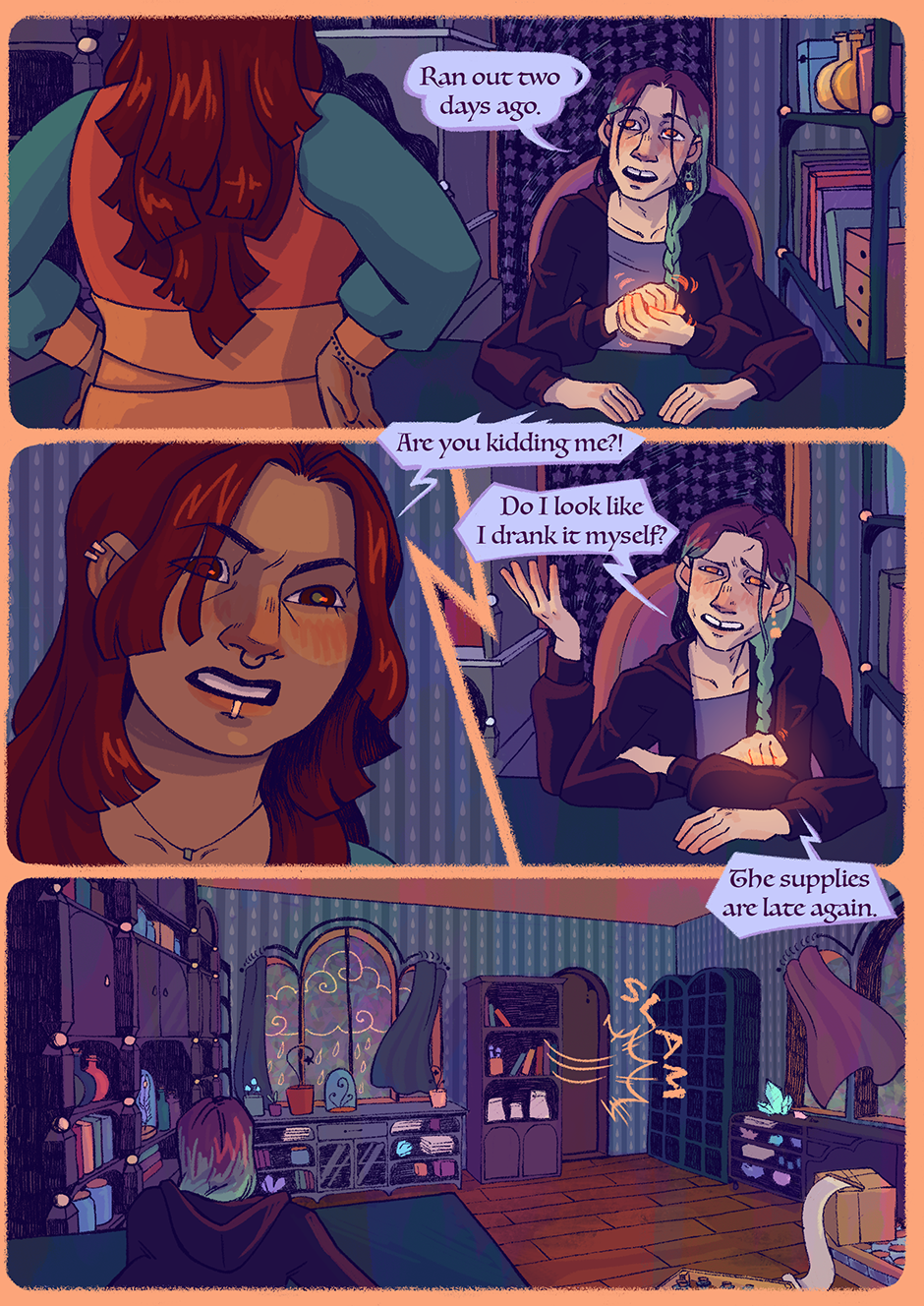 this is a small update but the next one is coming very soon (next friday!!!) i talked to more experienced artists and they suggested i change my schedule so now instead of 1 whole chapter a month i will be posting 1 or 2 double pages (depending on how much action there is) twice a week (so on fridays and sundays)