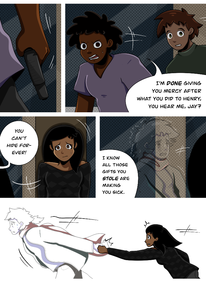 In a world where superpowers are the norm, fourteen-year-old Bella McNair’s life has been turned upside-down by a family tragedy and the mysterious disappearance of her best friend. But when she makes a shocking discovery, she--and everyone she loves-- is thrust into the deep end of their reality, revealing sacred forces far mightier and more horrifying than she could have ever imagined. [currently no upload schedule bc I’m super busy and redoing some of the comic :’) ]