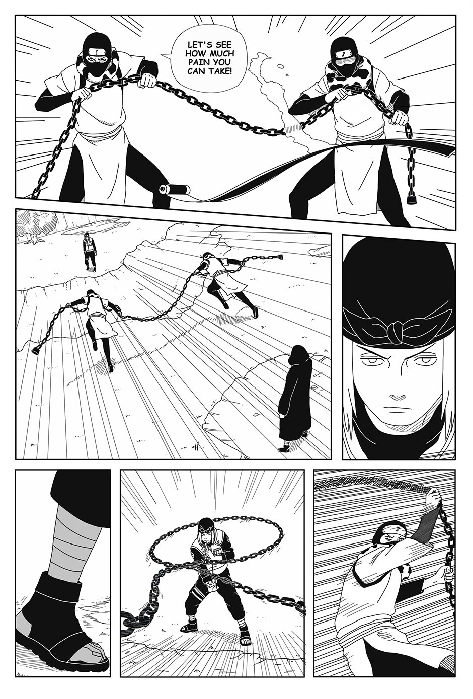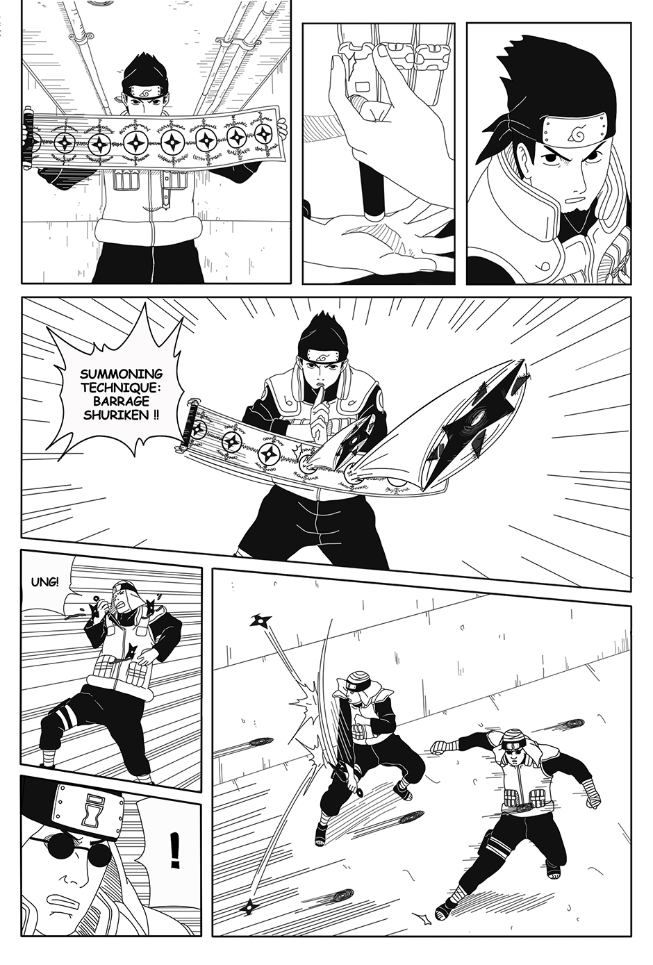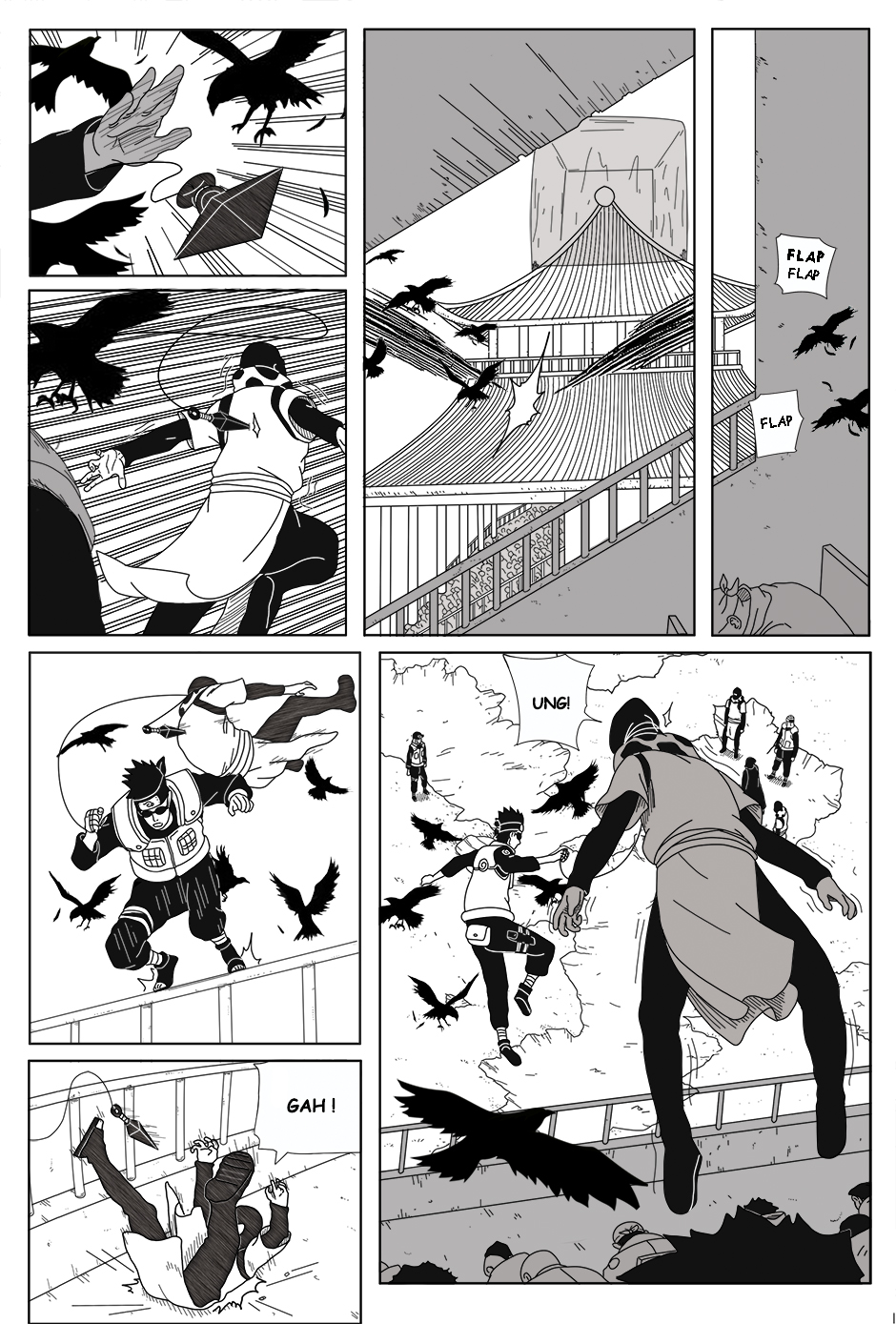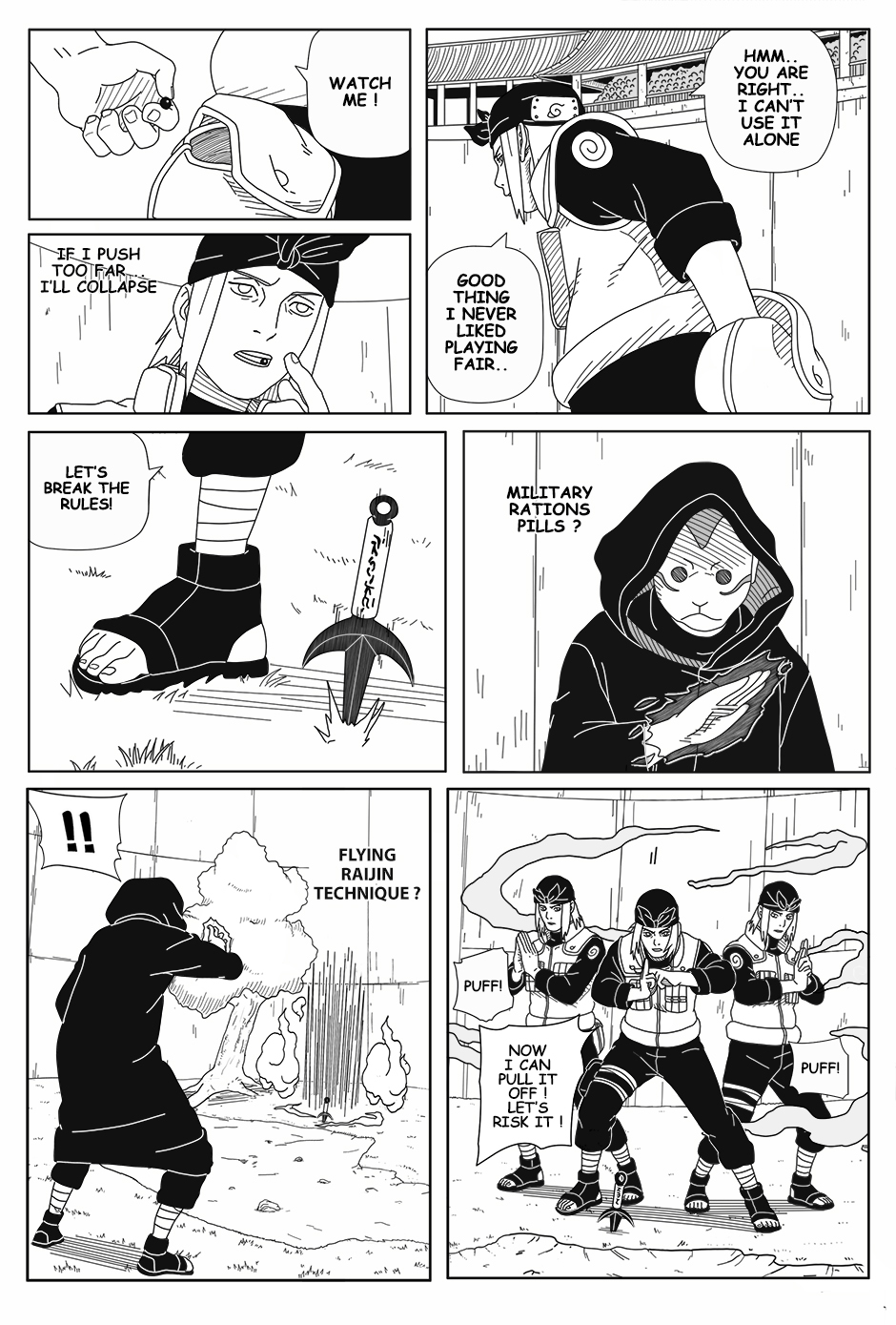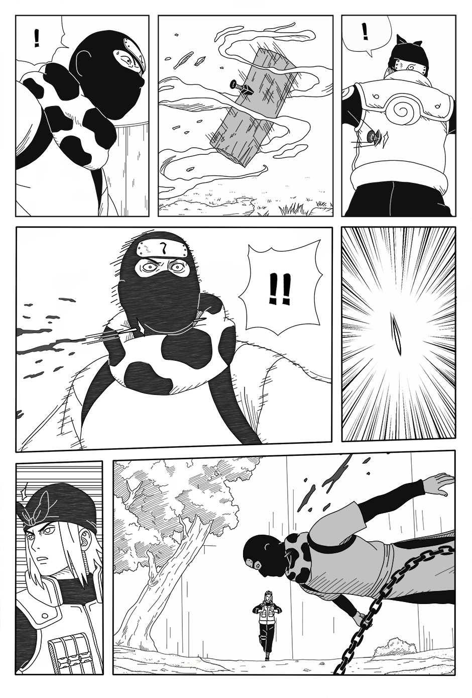 As Genma fights alone, his comrades Raido and Iwashi struggle elsewhere in the arena, injured and separated. With a forbidden technique about to be unleashed, the Hokage Guard Platoon faces its darkest hour.