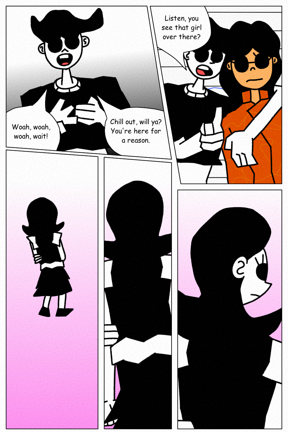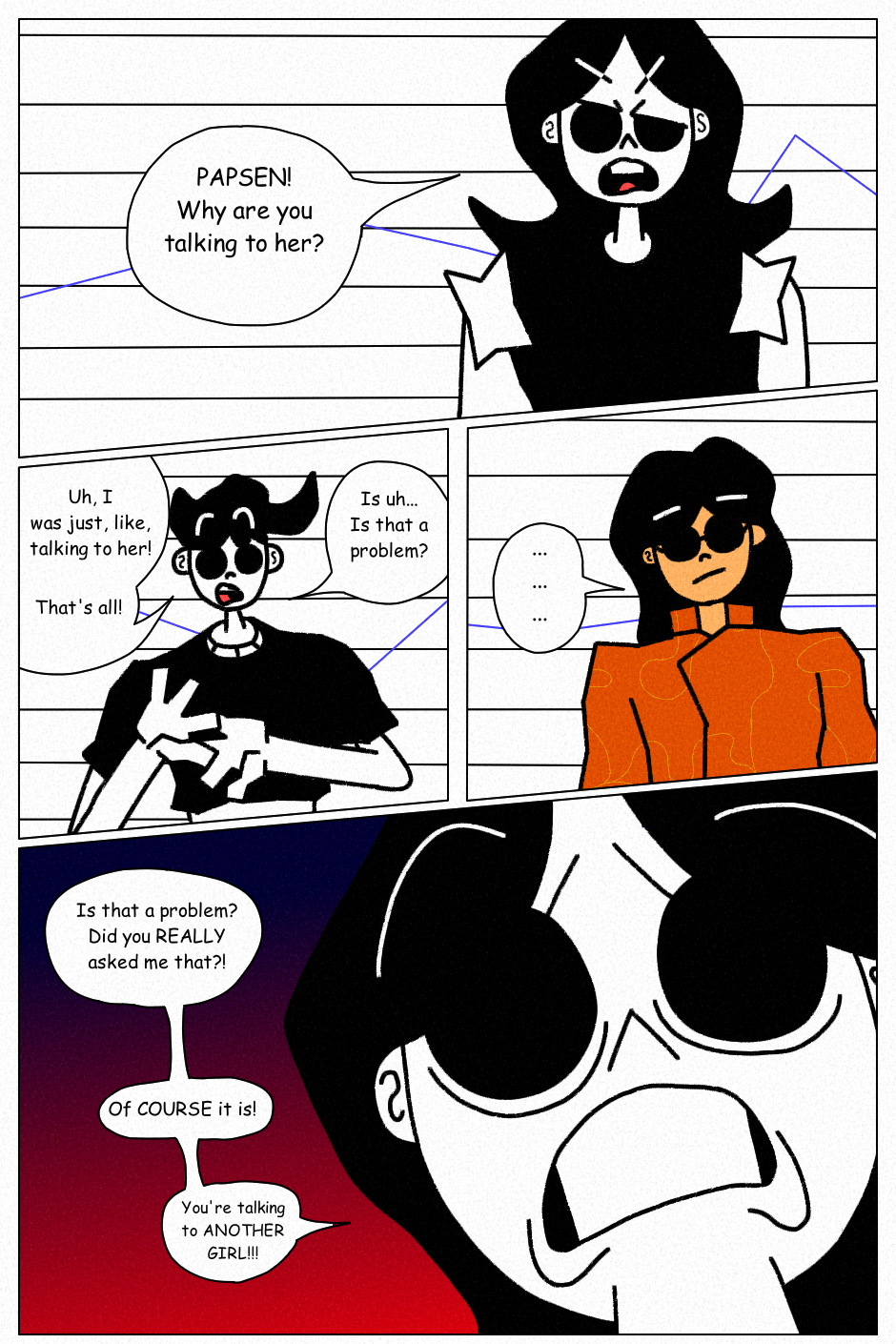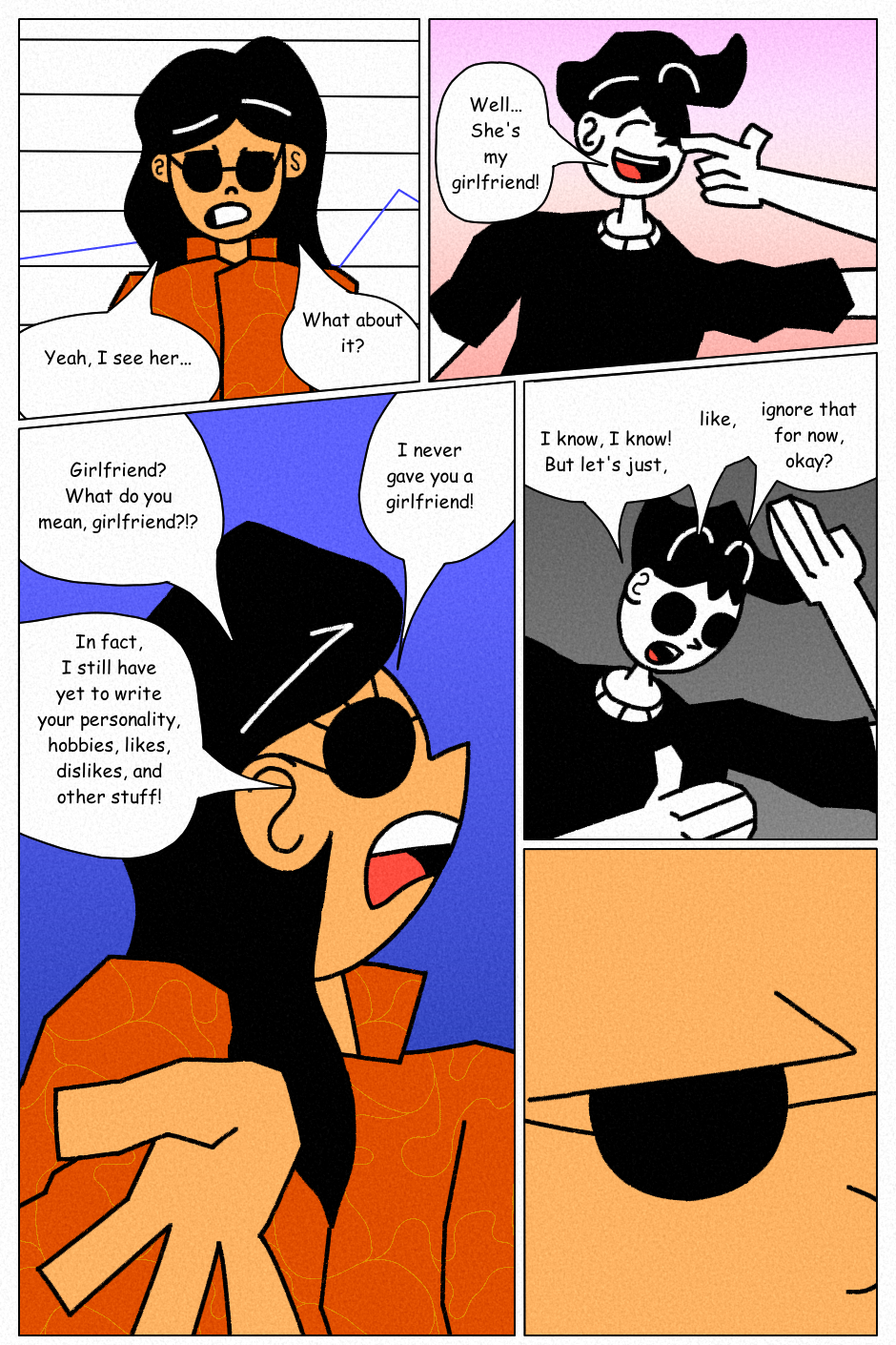 The authors note and the girl getting mad because a drawing has a gf and that he doesn’t love her