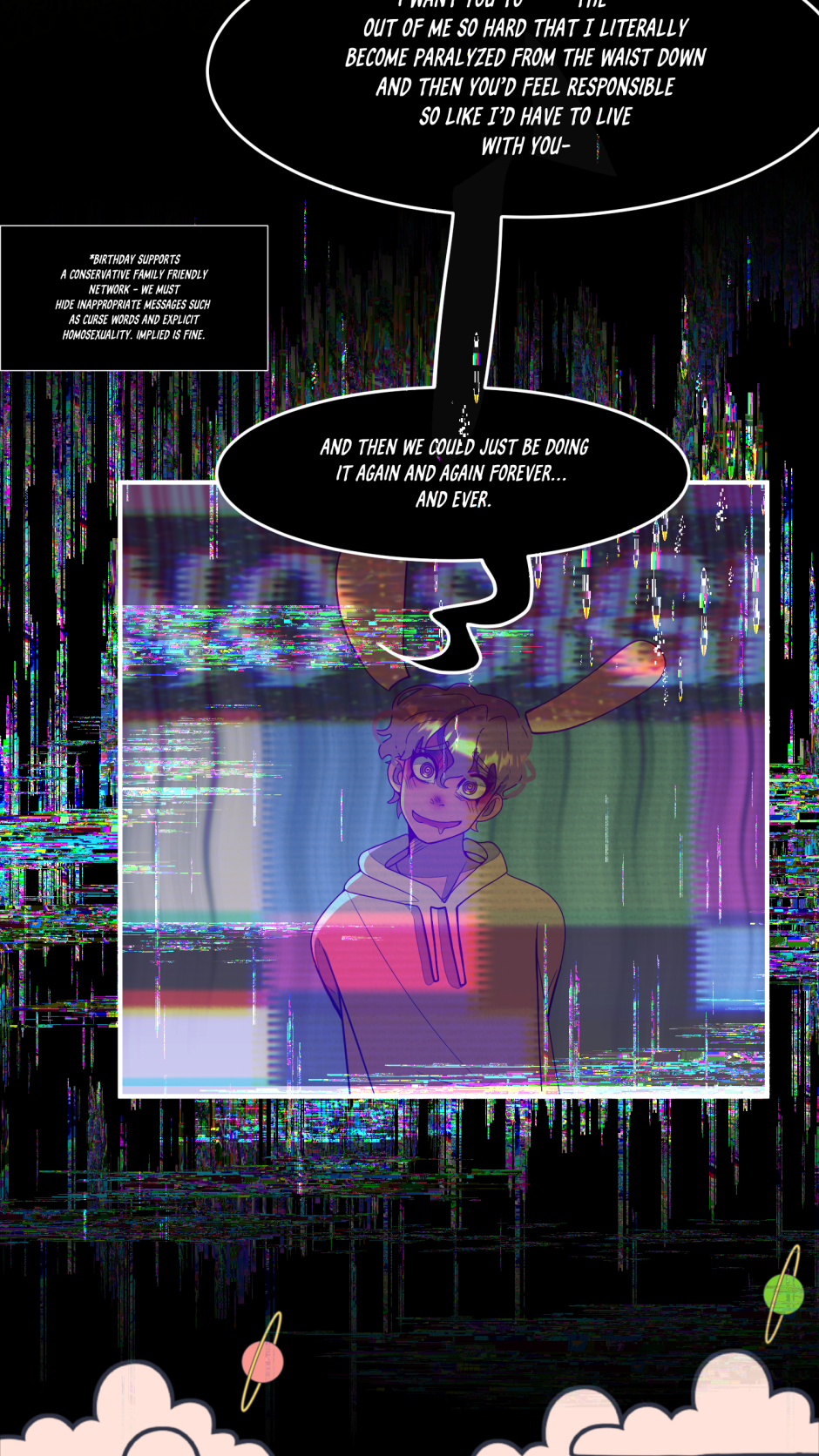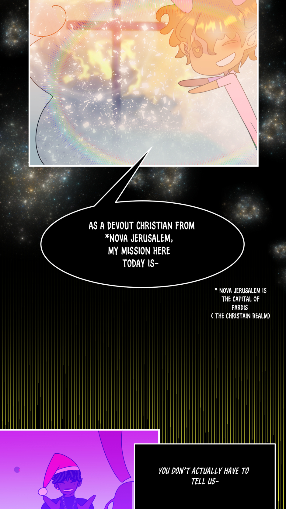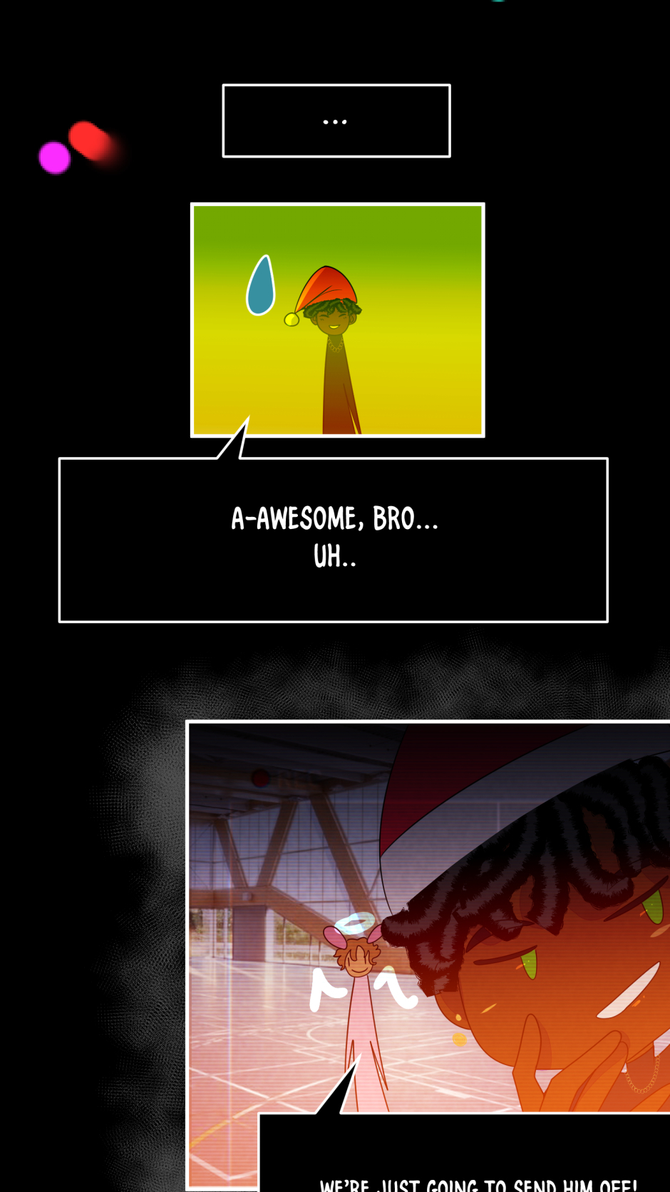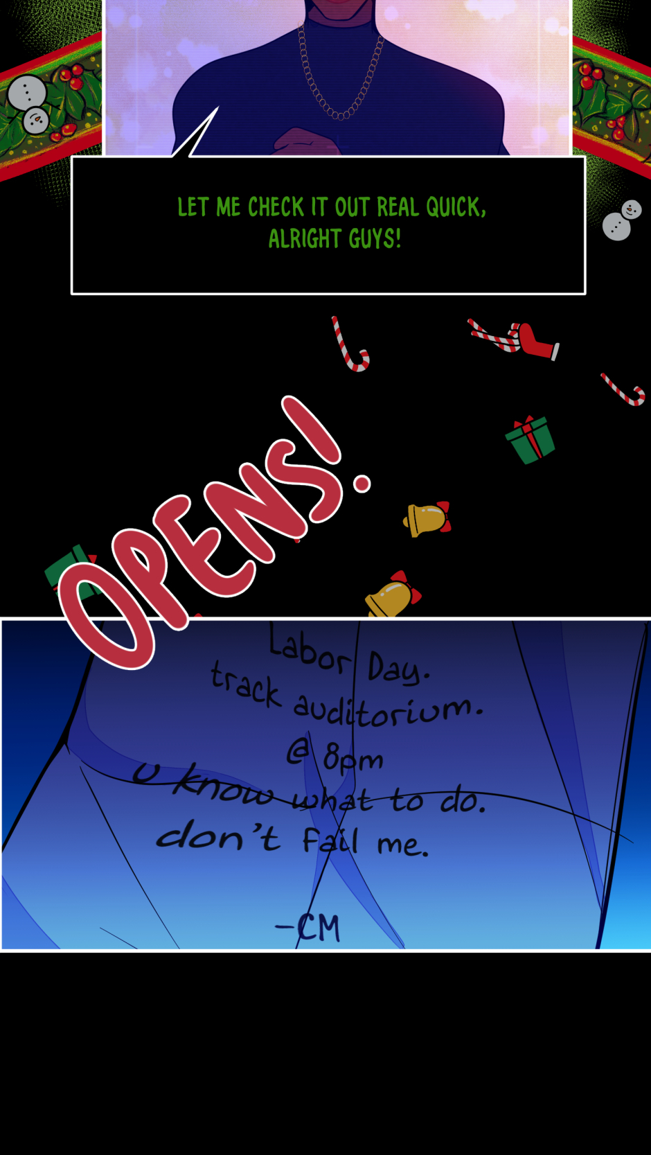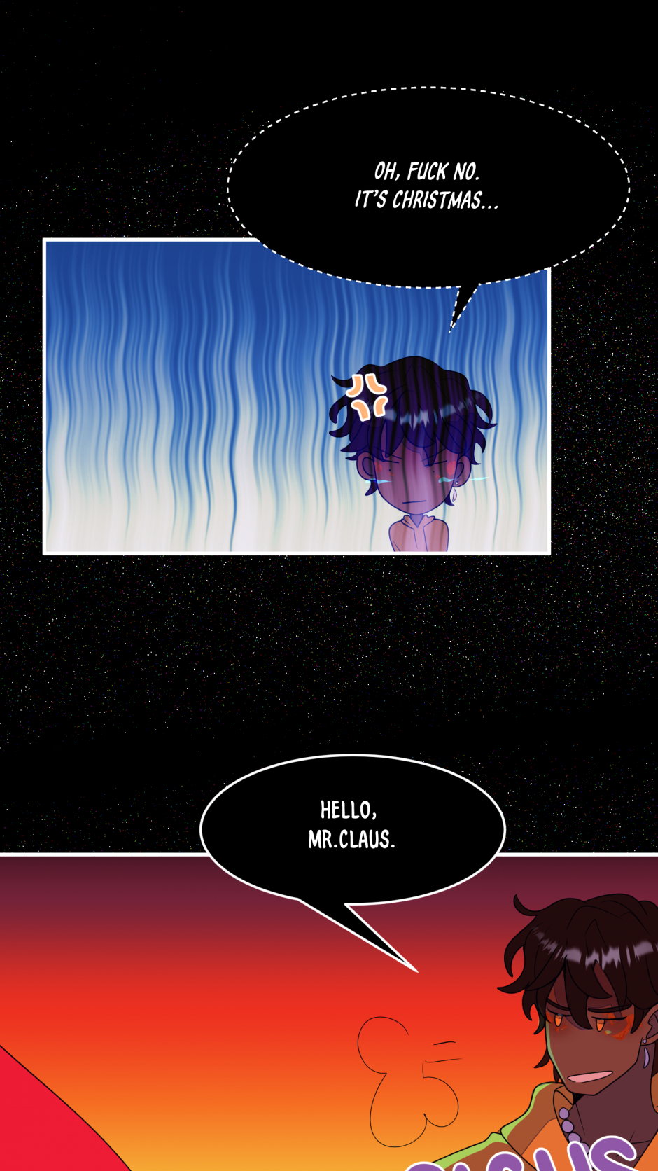 ”Imagine the Holidays as people, now trap them in the worst death game possible. ” When Holland - the enigmatic prince of Halloween - found himself being sent to Father Time's new silly game show, he had no idea of the terrors that would follow. As the game is revealed to have a very morbid twist, one goal is made completely clear to him "Survive, no matter the price” and despite how messed up it would seem, the representative of Christmas - Chris - seems take a liking to that... and him.