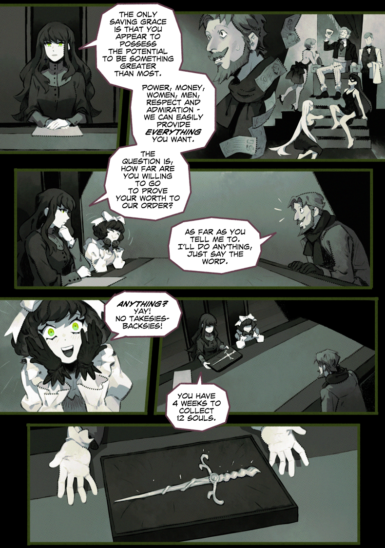 I hope you liked the chapter :3 Next one will be a short story ("Notes" one). I'll also go back to full-color since b/w + gradient color hasn't been faster to do (too boring, jumped to do anything else but not coloring)