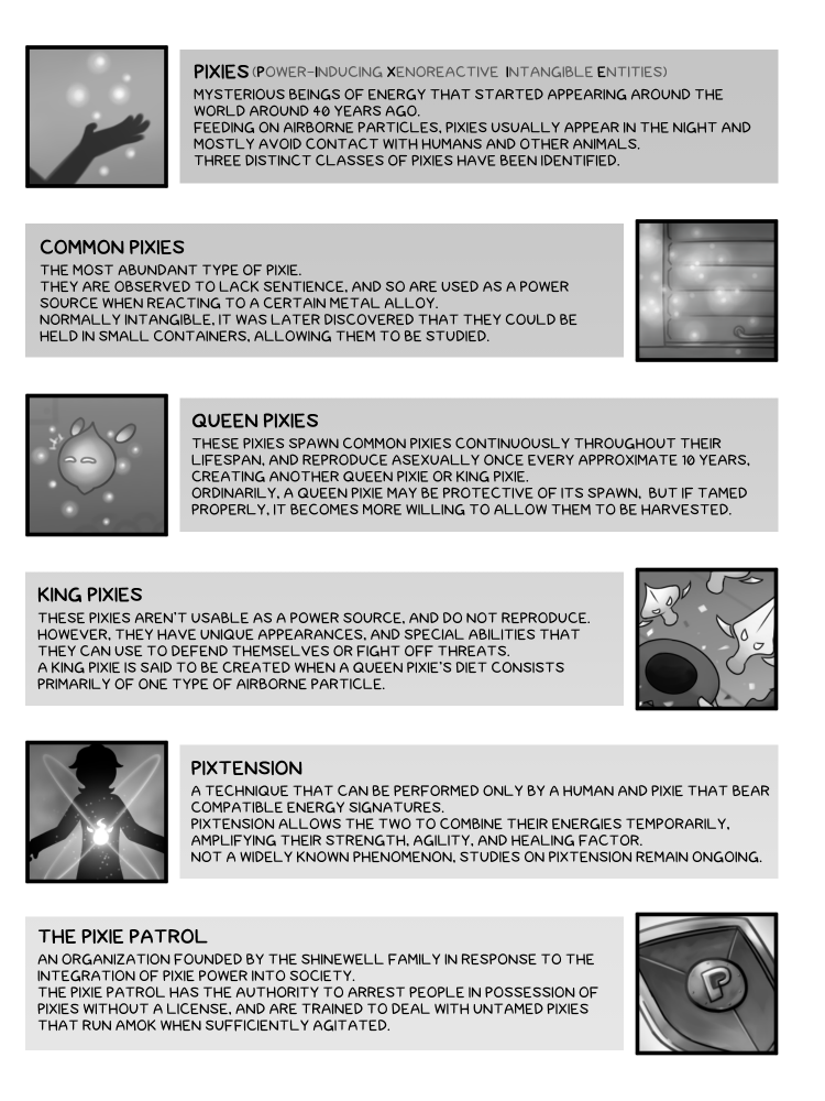 As an officer of the Pixie Patrol, Zeph Shinewell devotes himself to all matters relating to the strange life-forms called "pixies" that inhabit the world.