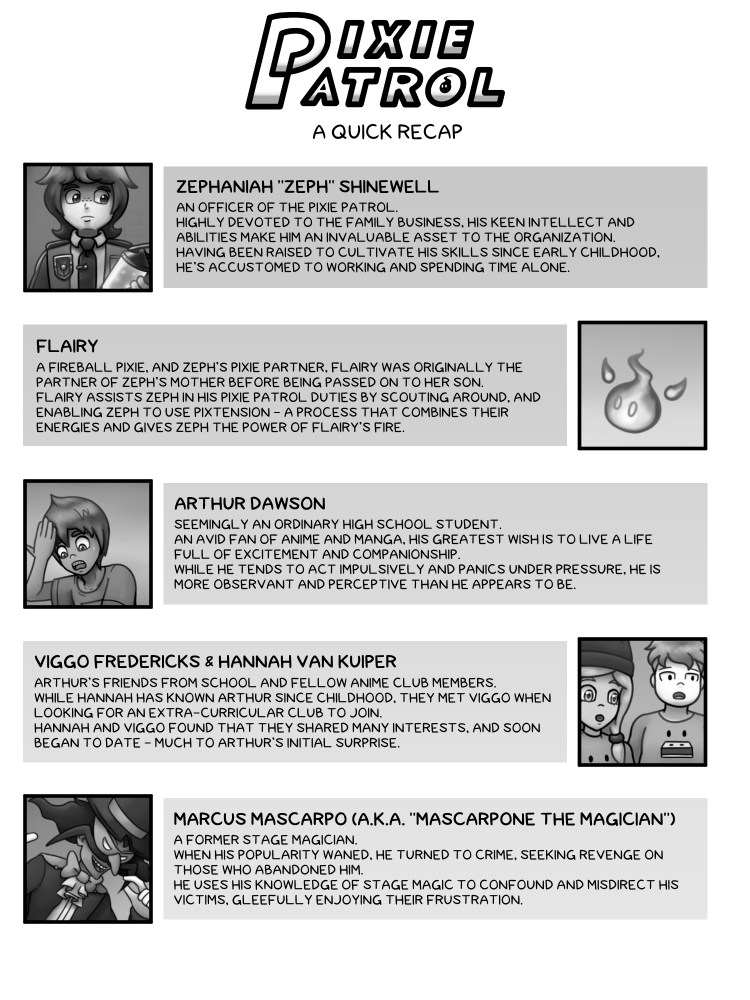 A brief recap of the characters and story elements so far.