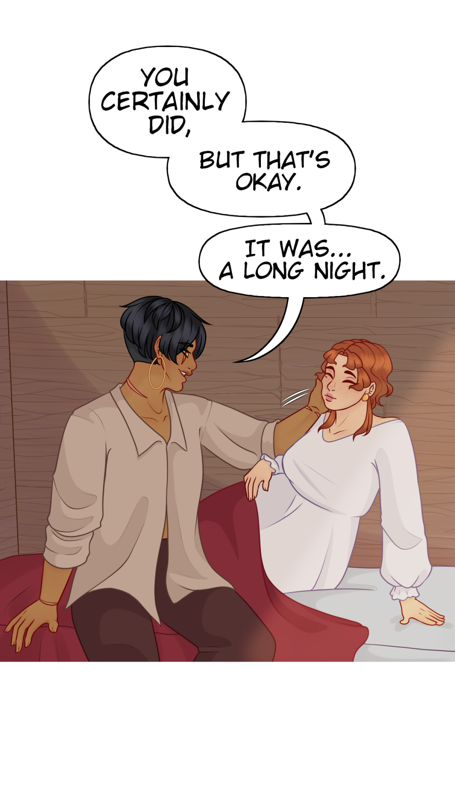 Sorry for the shorter episode! Last chapter was a huge workload and I need to keep my buffer up! Also no, they didn't do more than a kiss and a cuddle, you'll know when something big like that happens. Anyway, Patrons are seven episodes ahead! Join patreon if you can't wait! https://www.patreon.com/sapphireandice