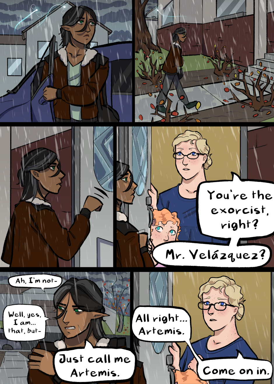 I'm sure most will understand what happened in the last three panels, but I felt I should clarify to make sure everyone's on the same page. Artemis just got misgendered because of her voice over the phone. This will come back up later and be explained with more clarity, but I don't want anyone confused in the meantime.