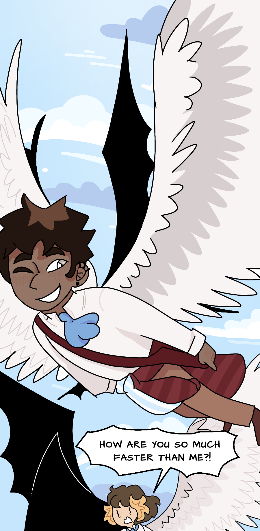 In a world where angels and demons coexist in their own respective realms. Tyler is born as a mix between the two. Despite sounding like a one-of-a-kind anomaly, turns out many more are like him! Only they're sent to live on Earth instead. Their peaceful school life eventually gets interrupted as a few angels visit their school, not knowing anything about their kind.